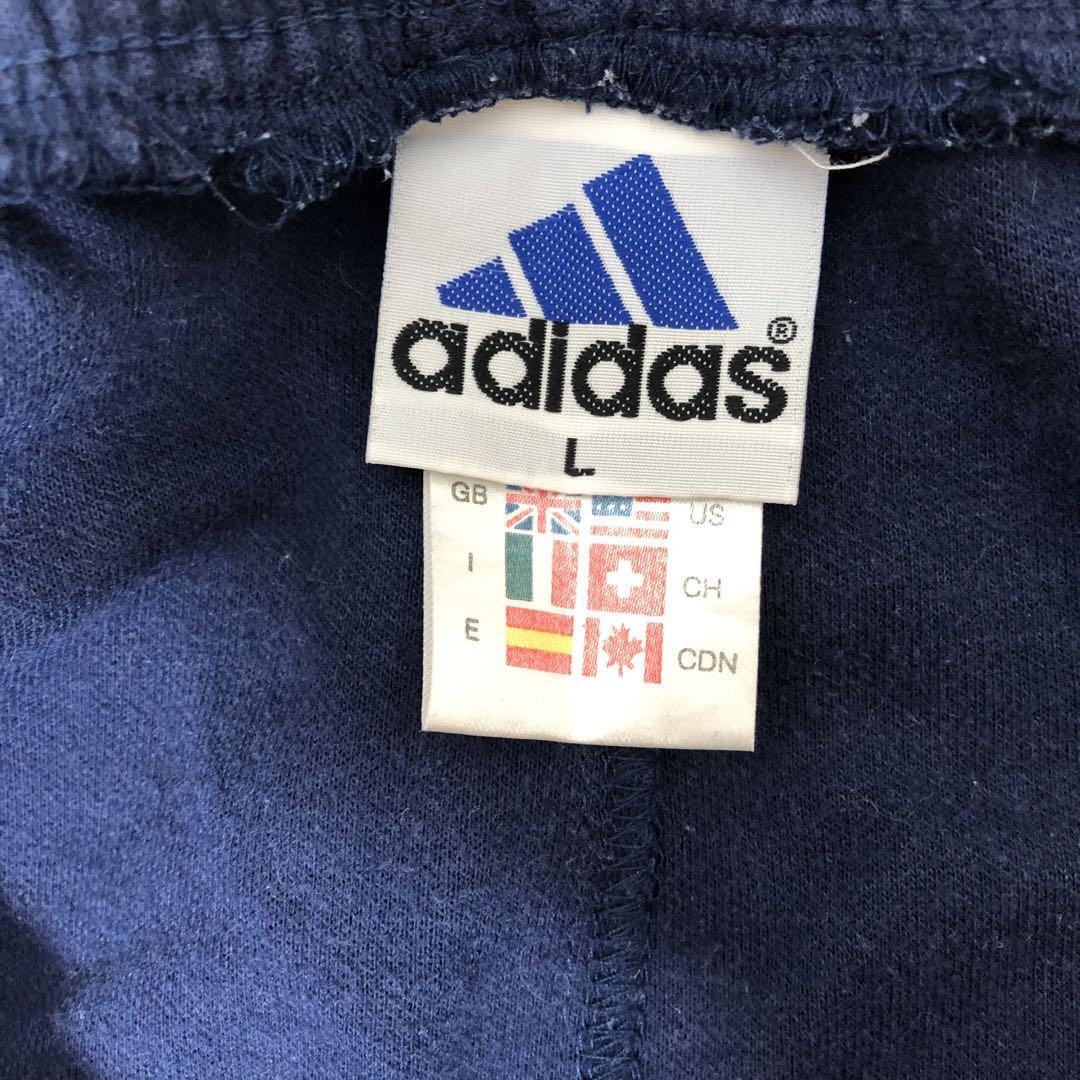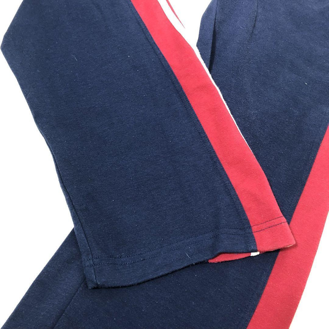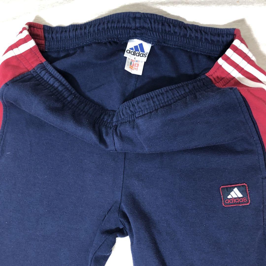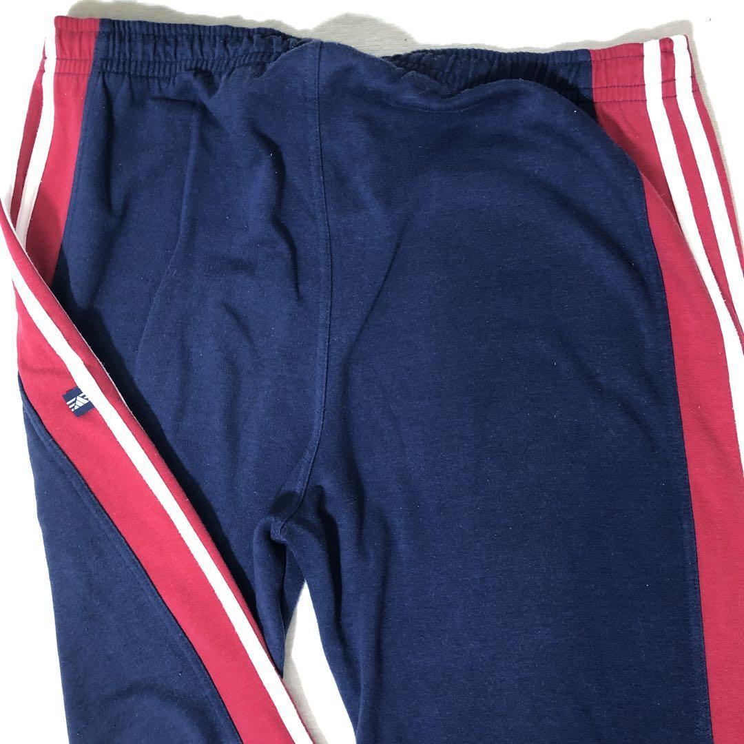 adidasのクラシックなデザインが特徴のスウェットパンツです。ネイビーを基調とし、レッドとホワイトのサイドラインがアクセントになっています。ウエストはゴム仕様で、リラックスした履き心地を提供。スポーツシーンやルームウェアとしても最適です