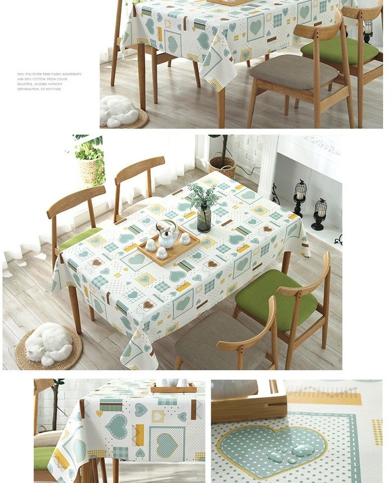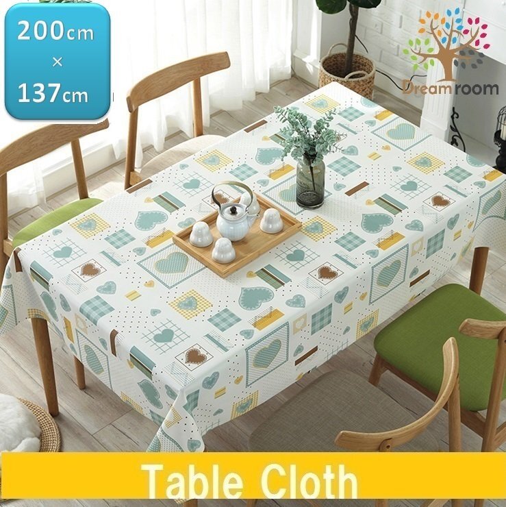 テーブルクロス ランダム ハート PVC製 防水 防油 加工 長方形 200cm×137cm ランチョン ティーマット テーブルリネンセットI-016