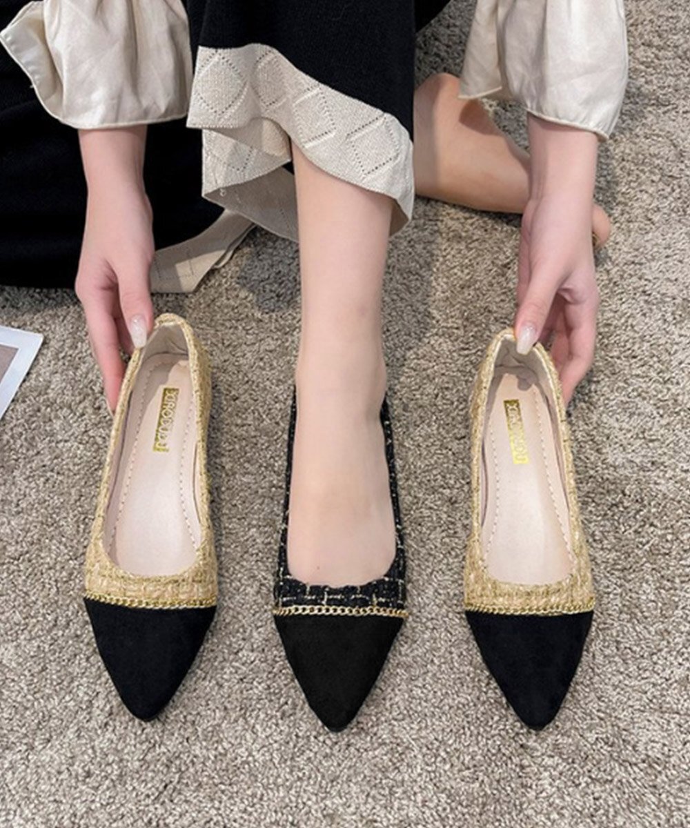 ポインテッドトゥパンプス ローヒール 痛くないぺたんこパンプス 歩きやすい 走れる配色パンプス 脱げない プチプラ婦人靴