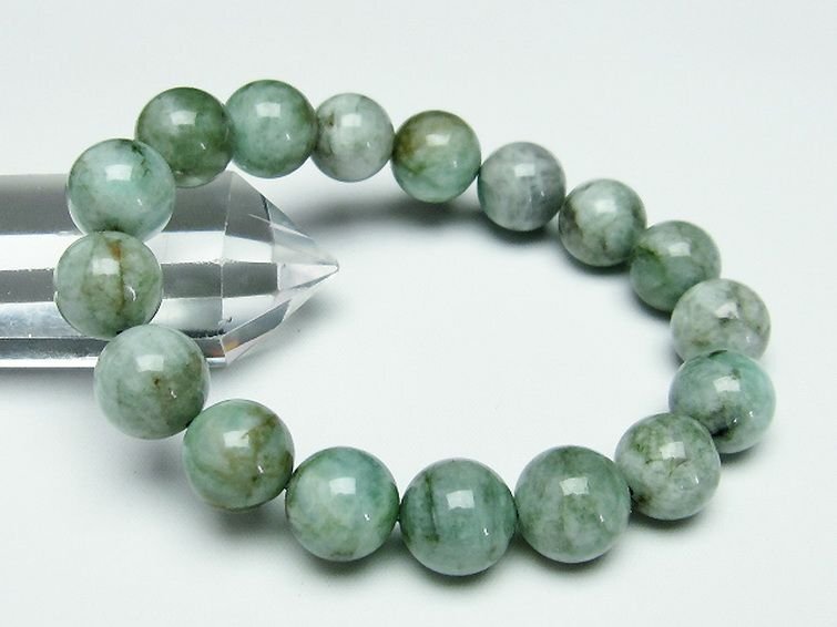 ■商品名: エメラルドブレスレット ■商品ID: T398-7754 ■商品重量:約 45.1g ■商品サイズ:内周約:169mm(±5mm)粒直径約:12mm(±0.5mm)~13mm(±0.5mm) 【エメラルド(翠玉)】 5月の誕生石として知られるエメラルドは世界四大宝石の一つとして知られています。 絶世の美女クレオパトラですらもこの石に魅せられ、自分の鉱山を持ってしまったという逸話が残っている程に美しい石です。 エメラルドはベリル(緑柱石)の一種で、花崗岩(かこうがん)やペグマタイトの岩の中で形成され、クロムやバナジウムの原子が加わったために緑色に発色したものです。 エメラルドと言えばその名が示す通り、エメラルドグリーンのカラーを想像しますが、半透明のミルキーグリーンから、宝石室な透き通った濃いグリーンまで色合いはさまざまです。 エメラルドは古くから治療薬としても用いられ、心臓と胃の強化や恐れと不安を和らげ精神力を強化するとされており体調面と精神面の両方へのヒーリング効果が期待できます。 また、エメラルドは愛の力がとても強いので、恋を成就させて幸せな結婚へ導くとされています。愛情あふれる関係をもたらすとされていますので、恋愛のみならず対人関係を良くしたい場合にはお守りとしてもいいでしょう。 ⇒ エメラルドをもっと詳しく ◆ワンポイント情報 エメラルドはもともと無数の傷やインクルージョンを内包している石です。この傷がある事が天然物のエメラルドの証とも言えますが、やはり傷が少ない状態の方が価値が高まります。 また、エメラルドは紫外線や水分などが退色の原因となる場合がありますのでお取り扱いには十分にご注意下さい。 |