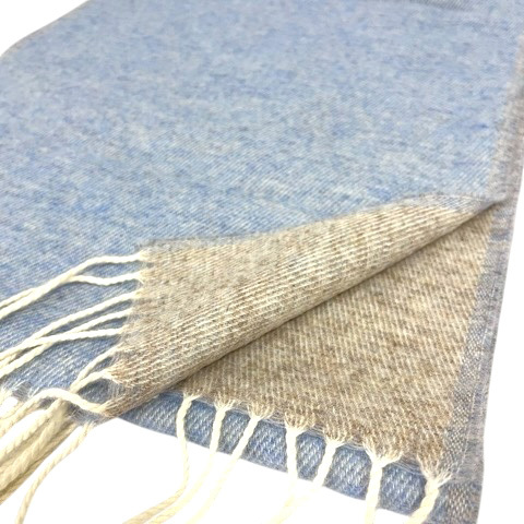 未使用品 アラミス ARAMIS マフラー ストール フリンジ ウール混 無地 水色 ライトブルー ベージュ レディース