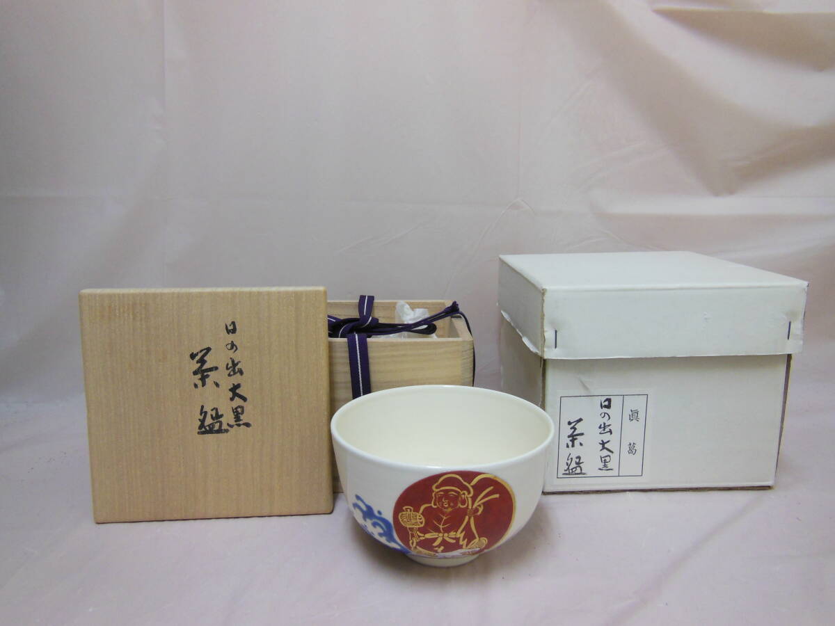 22 香斎 作 日の出大黒 茶碗 (共箱)