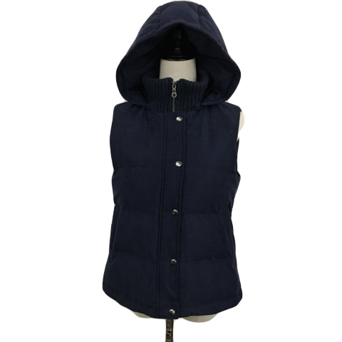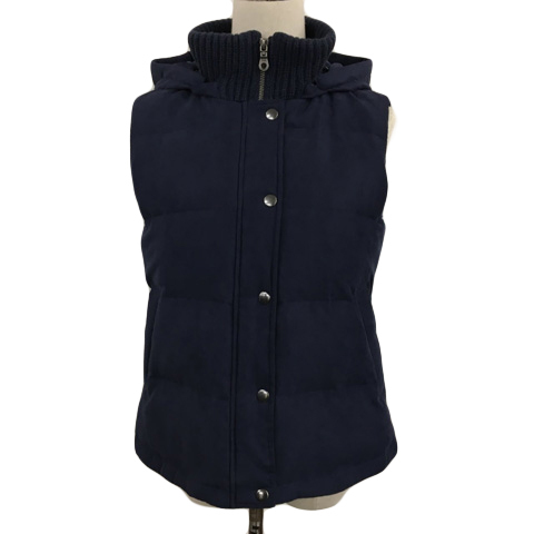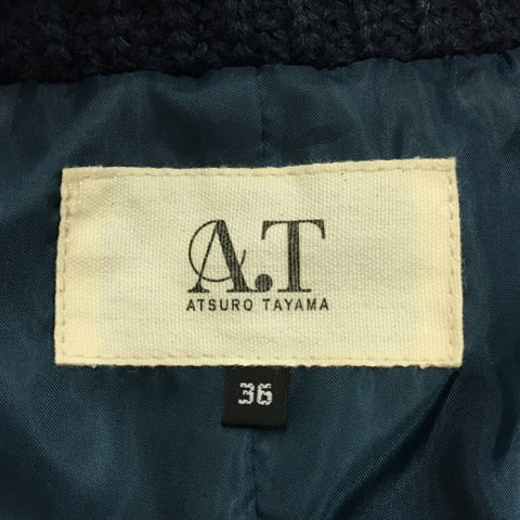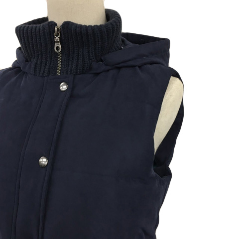 エーティー アツロウタヤマ A/T ジャケット ベスト ダウン スタンドカラー ジップアップ フード 無地 36 紺 ネイビー レディース