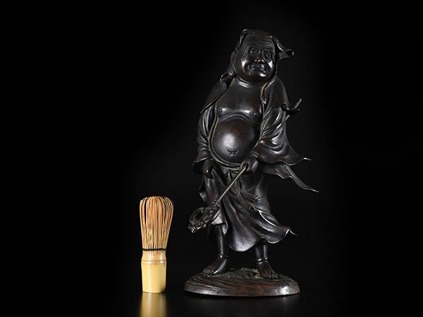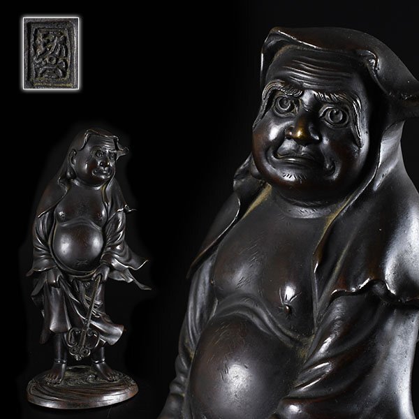 琢斎 銘 銅製 達磨大使 立像 重量 3,9kg / 置物 | ||||||||||||||||||||