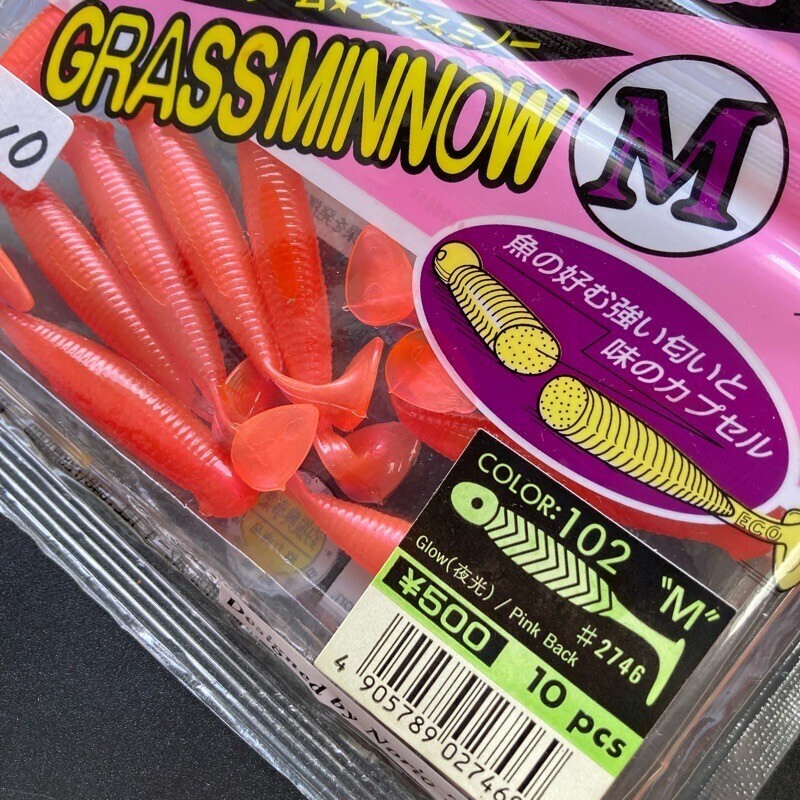 813815 新品 エコギア パワーワーム グラスミノー M #夜光ピンクバック ECOGEAR 田辺哲男 監修 ソイ マダイ マゴチ ヒラメ 等