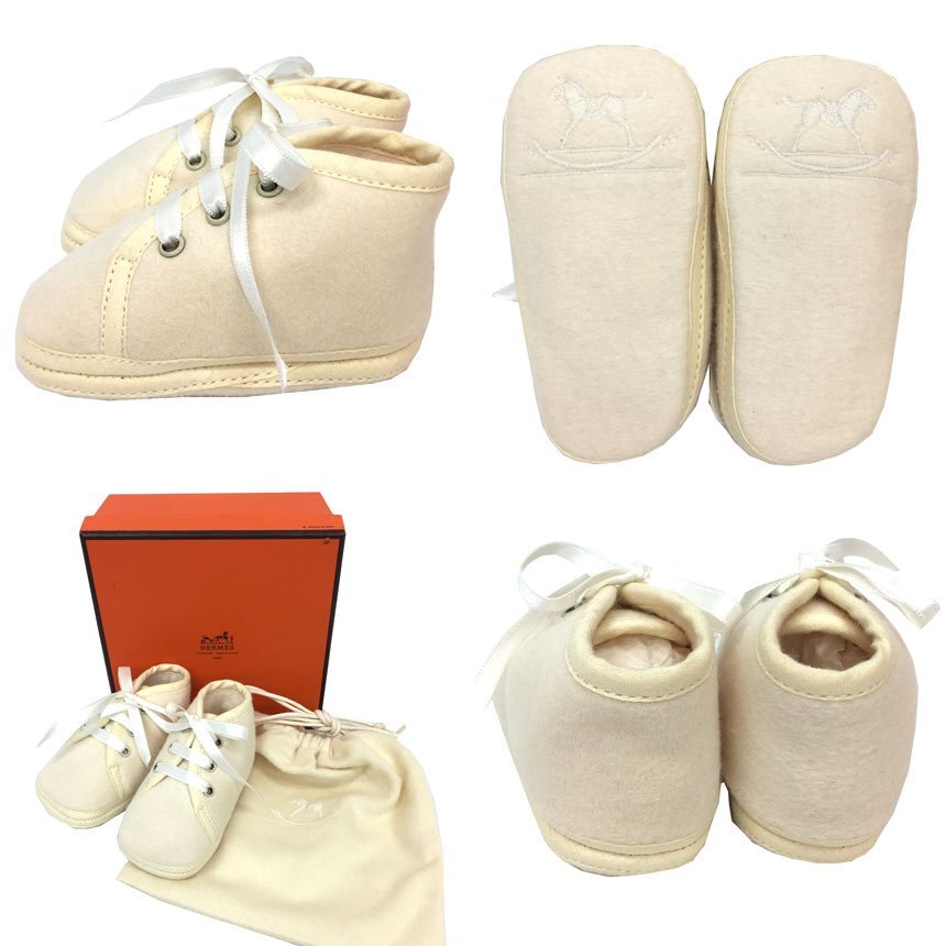 PRコメント | エルメスのベビーシューズが未使用で入荷! 可愛らしいデザインと優しいオフホワイトのお色はインテリアにも最適♪ 玄関やピアノの上などお部屋のアクセントにぴったりです♪ 付属のポーチは化粧品やエチケット用品をいれるミニポーチとしてもお使いいただけます♪ 仕様:MADE IN FRANCE 未使用品ですが、付属ポーチにしまいジミあり。片足タグ切れありの為SAランクです。 |