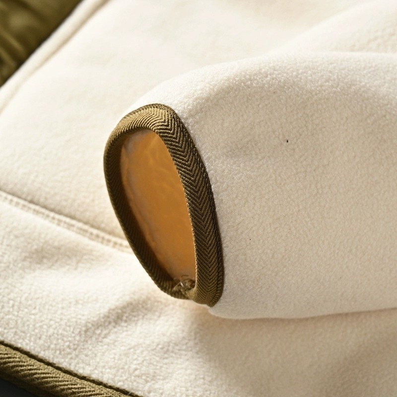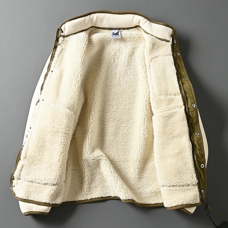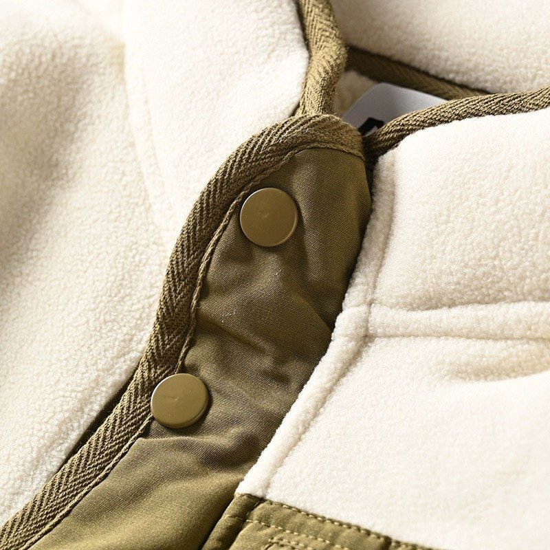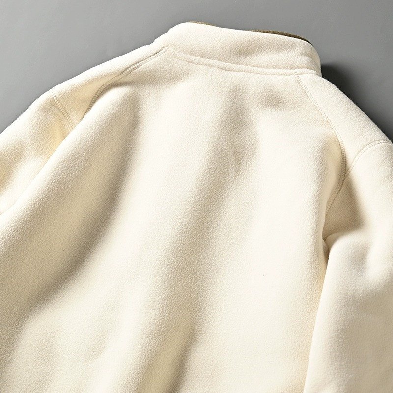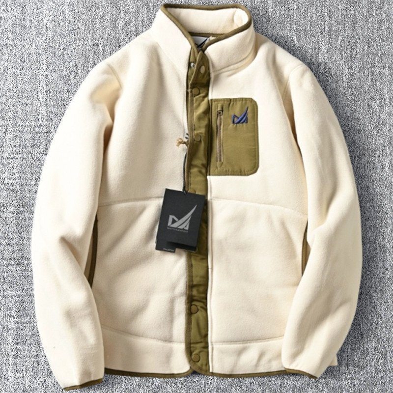 新品 欧米サイズ フリースジャケット 裏起毛 スタンドカラー 配色 保温 秋冬 防寒 厚手 メンズ フェイクボア ブルゾン アイボリー T8183-XL