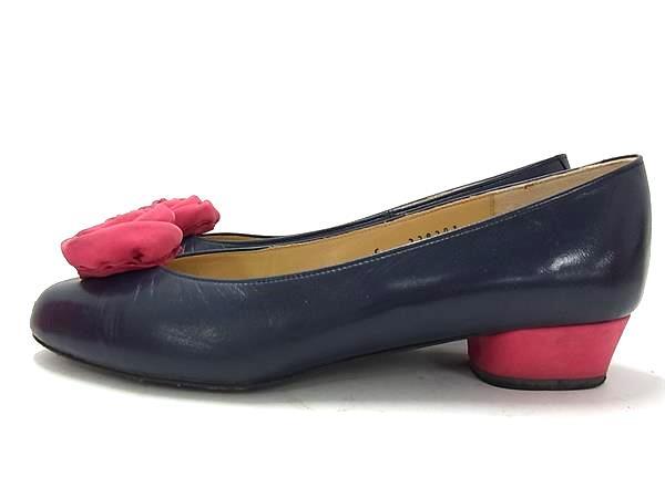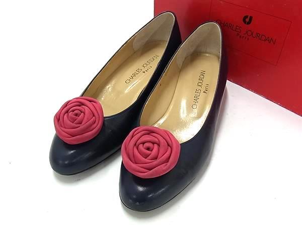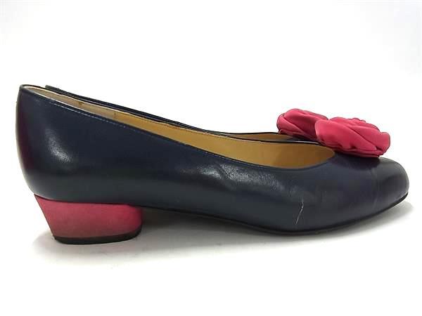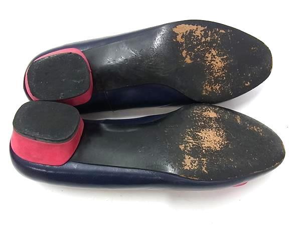 ■美品■ CHARLES JOURDAN シャルル ジョルダン レザー パンプス シューズ 靴 表記サイズ6 約24cm ネイビー系×ピンク系 DI6784