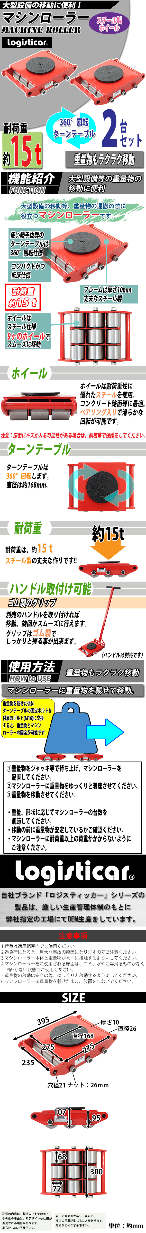 | 商品名 | 送料無料 マシンローラー 耐荷重約15t スチール製ホイール 2台 2台セット 360° ターンテーブル 回転台 運搬ローラー 運搬マシンローラー 重量物 低床 ポーター 赤 コロ車 スチールローラー 搬入 搬出 運搬車 台車 キャリー マシーン ローラー 引越 レッド roller15ts2 |