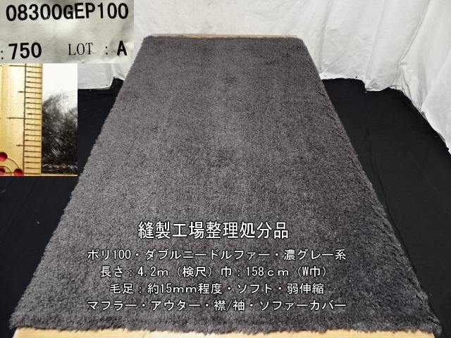 | ポリ100 ダブルニードルファー 毛足約15mm 濃グレー系 5m W巾 | |