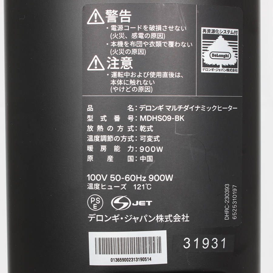 【美品】デロンギ マルチダイナミックヒーター MDHS09-BK ピュアホワイト+マットブラック ゼロ風暖房 6~8畳用 DeLonghi 本体