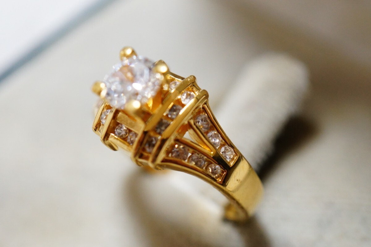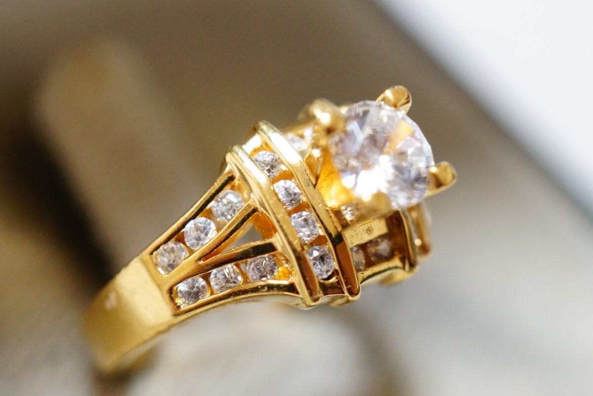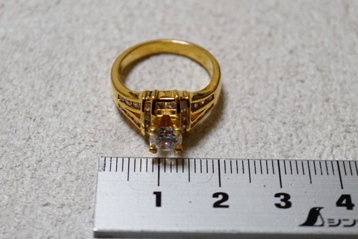 731 キュービックジルコニア ゴールドカラー リング 指輪 ヴィンテージ アクセサリー 18KGP刻印 メッキ 装飾品