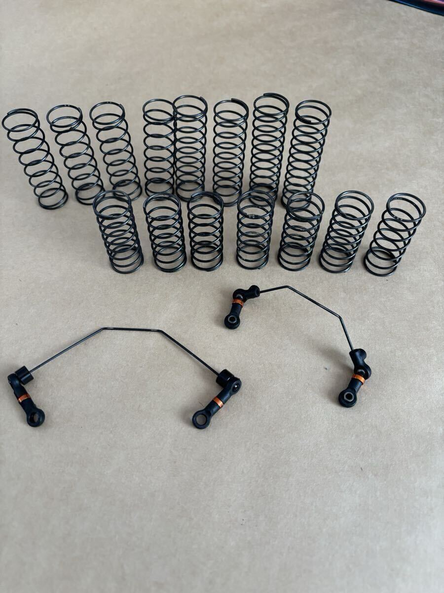 写真7枚目の種類やサイズは不明ですが走行時装着しておりました前後スタビライザー・種類が確定できませんが前後スプリング数本、写真6枚目の付属品・中古品含むサスアーム、写真10枚目の部品お付け致します。