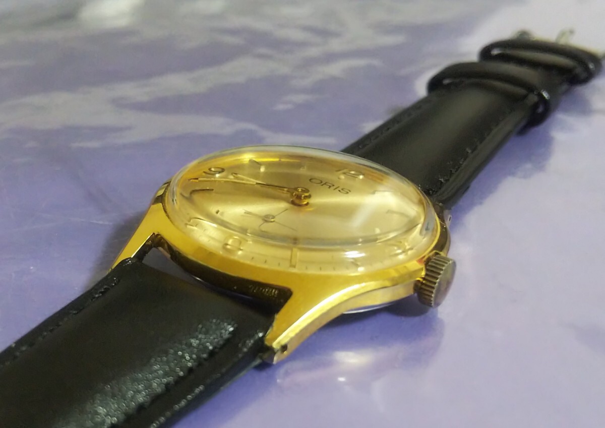オリスのアンティークはプラスチックの風防が多いのですが、こちらはガラスで状態も良い。