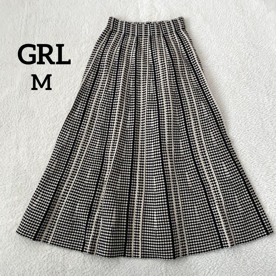 【グレイル 】千鳥格子柄 ニット ロングスカート Mサイズ フレア F1F893