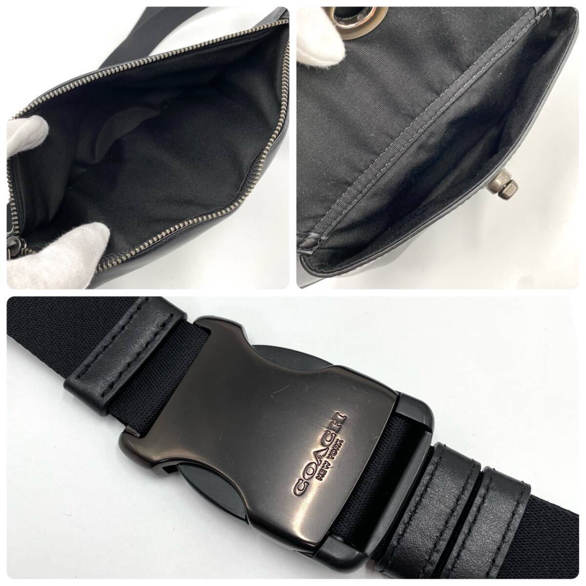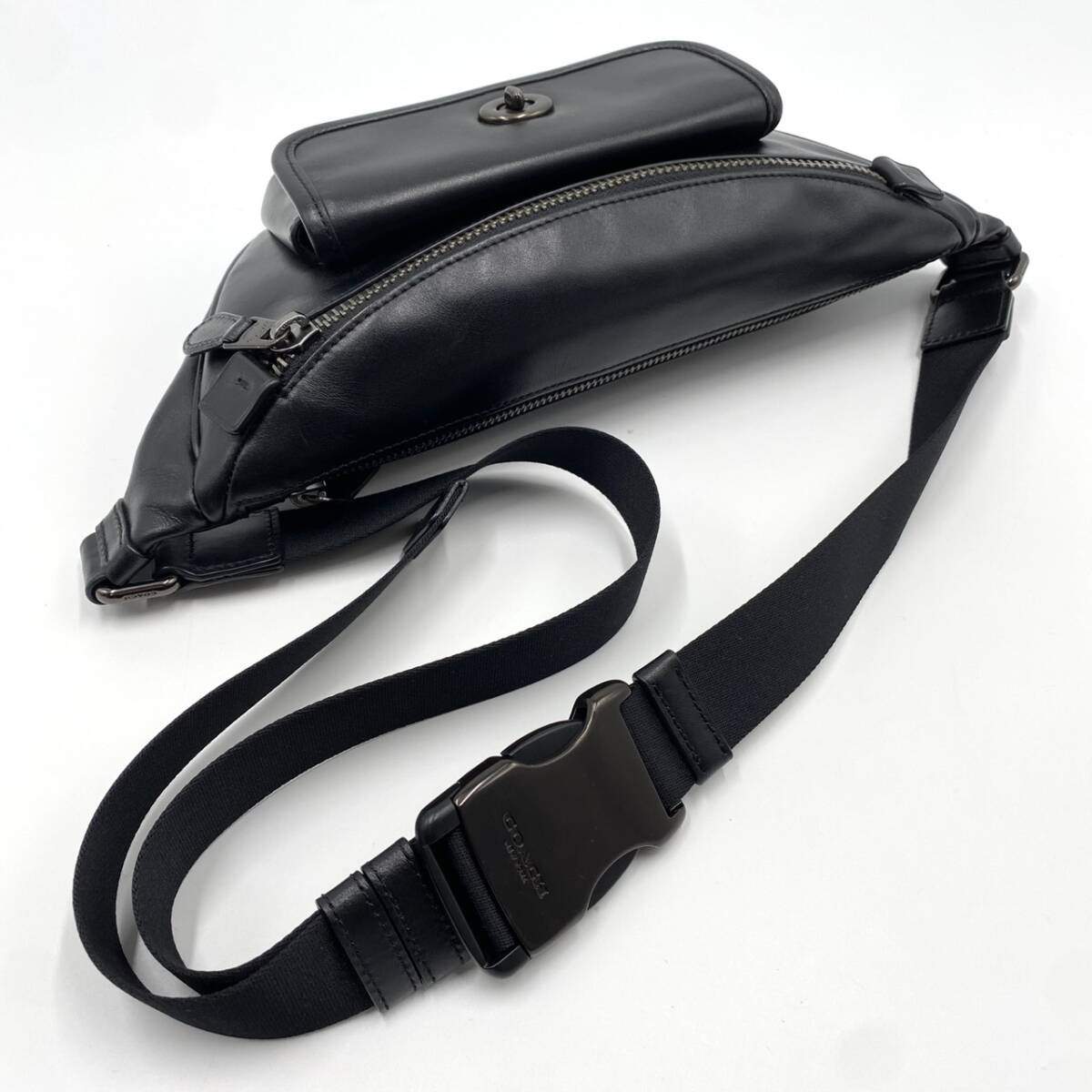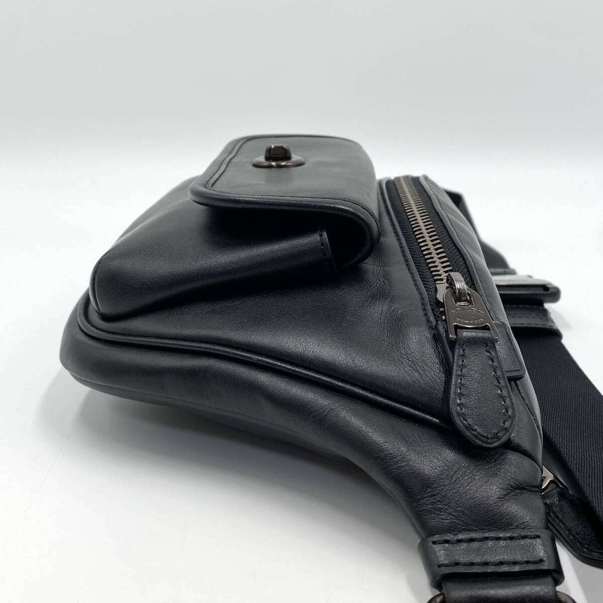 1円【極美品】コーチ COACH ショルダーバッグ ボディバッグ ヘリテージ ターンロック メンズ レザー 本革 斜め掛け ウエスト ブラック 黒