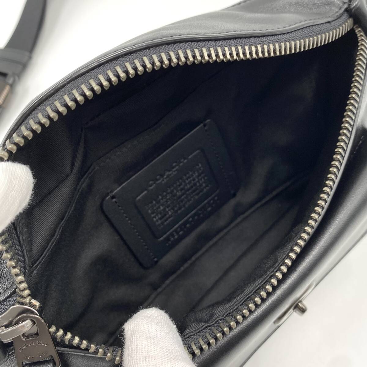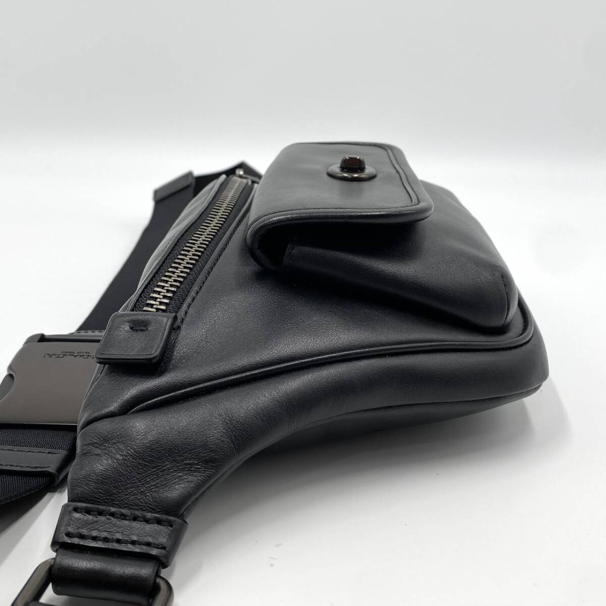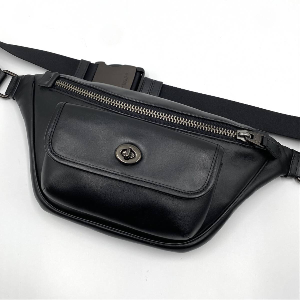 1円【極美品】コーチ COACH ショルダーバッグ ボディバッグ ヘリテージ ターンロック メンズ レザー 本革 斜め掛け ウエスト ブラック 黒