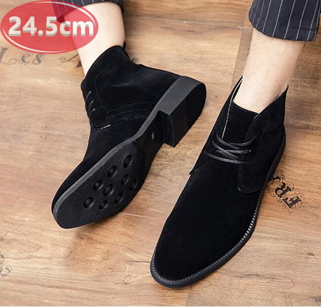 メンズ ビジネス PUレザー シューズ ブラック 24.5㎝ 革靴 靴 カジュアル 屈曲性 通勤 軽量 インポート品【n154】