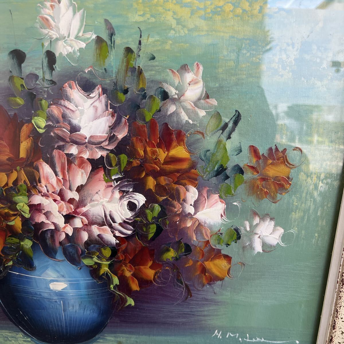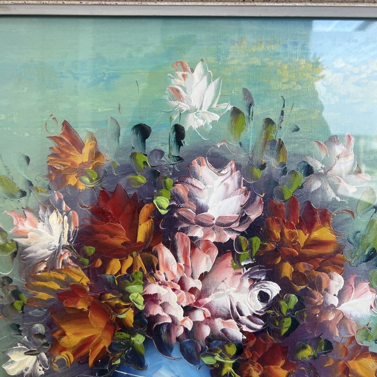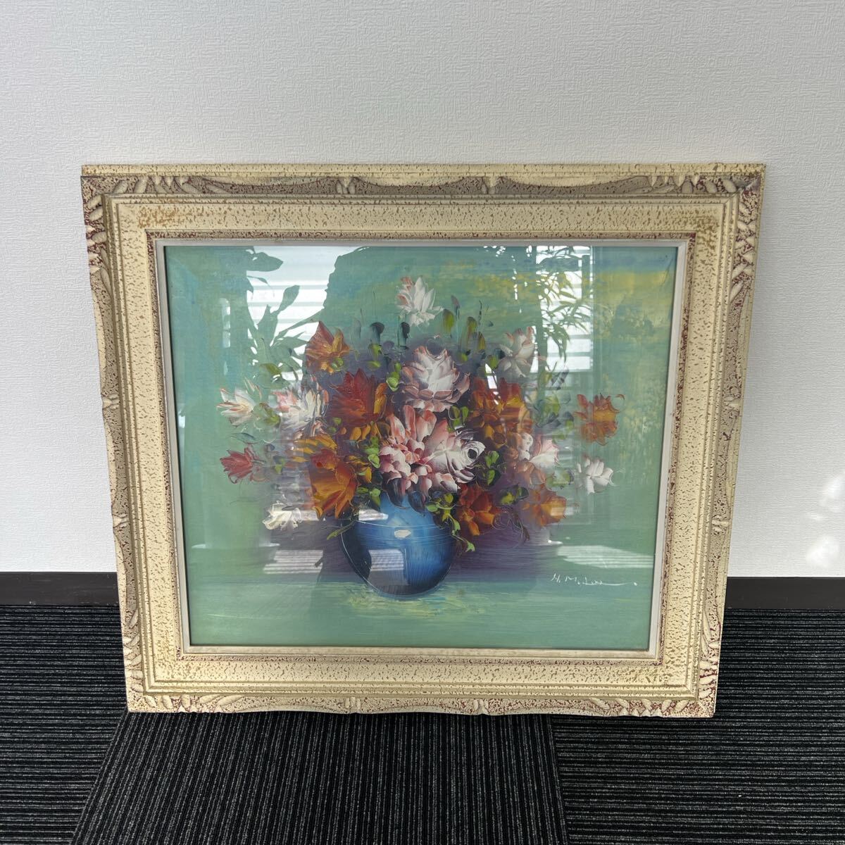 貴重 額装 油絵 絵画 油彩画 花 サイン有り
