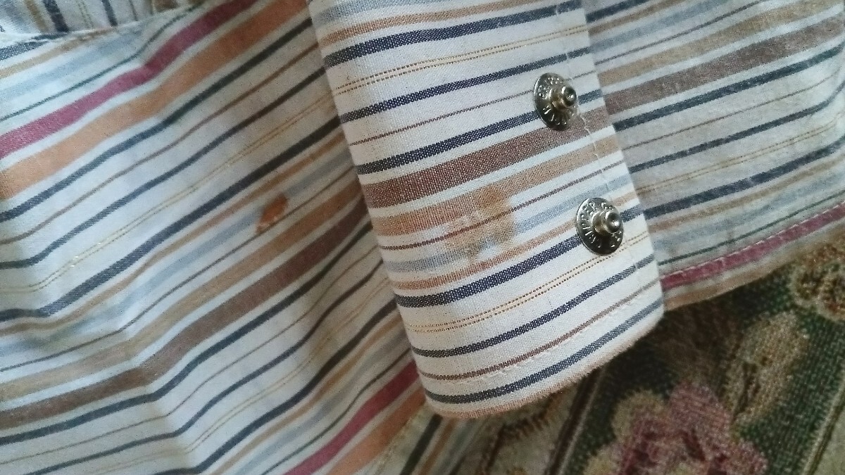 袖、肩に染み、襟周り少し黄ばみあり。