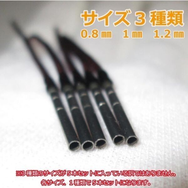 サイズ:*内径0.8mm・1.0mm・1.2mm(5本入)の3サイズ展開。