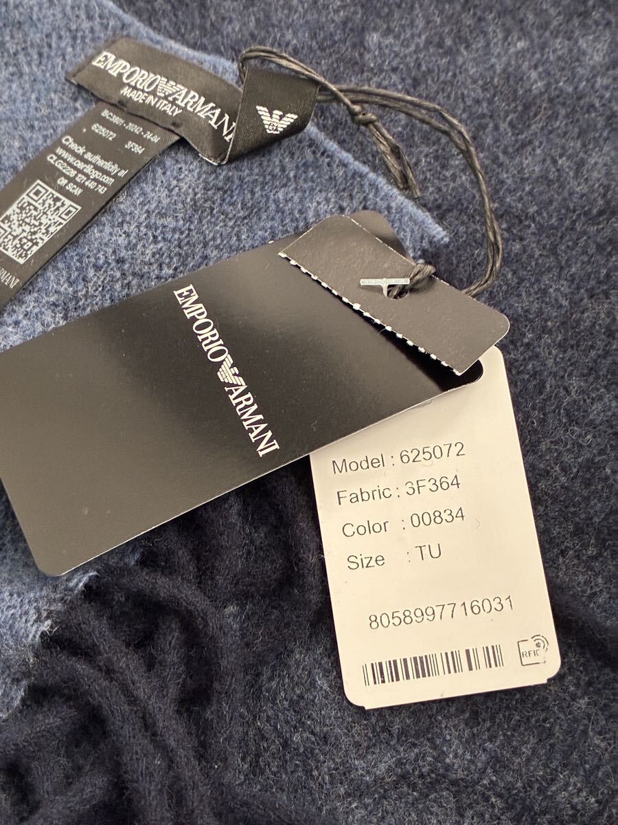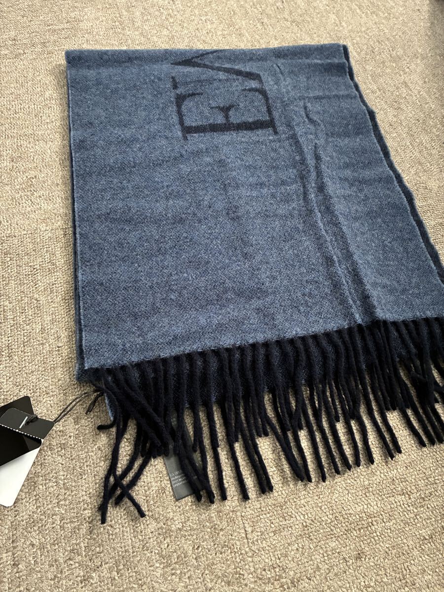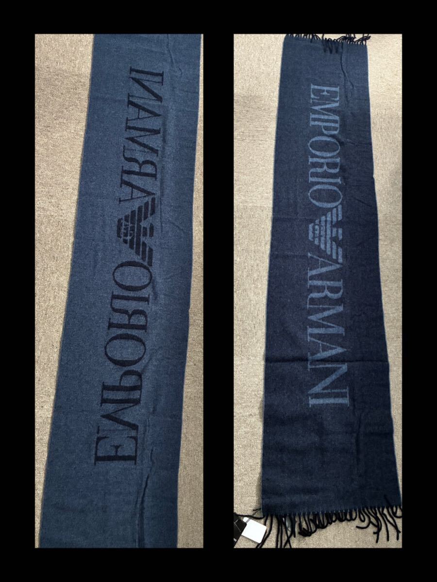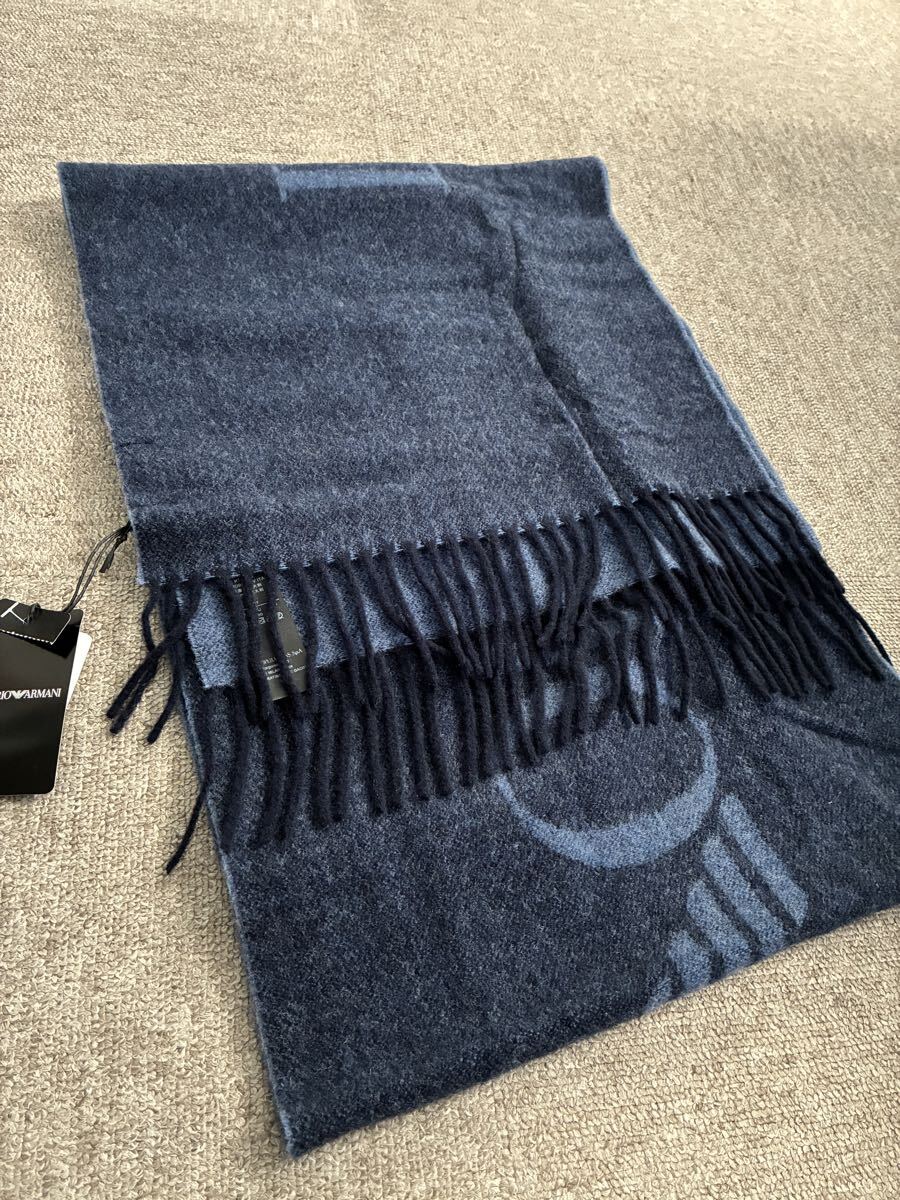 EMPORIO ARMANI(エンポリオアルマーニ)のメンズマフラーです。表が青、裏が水色で、首に巻くと2色が見えてオシャレです。