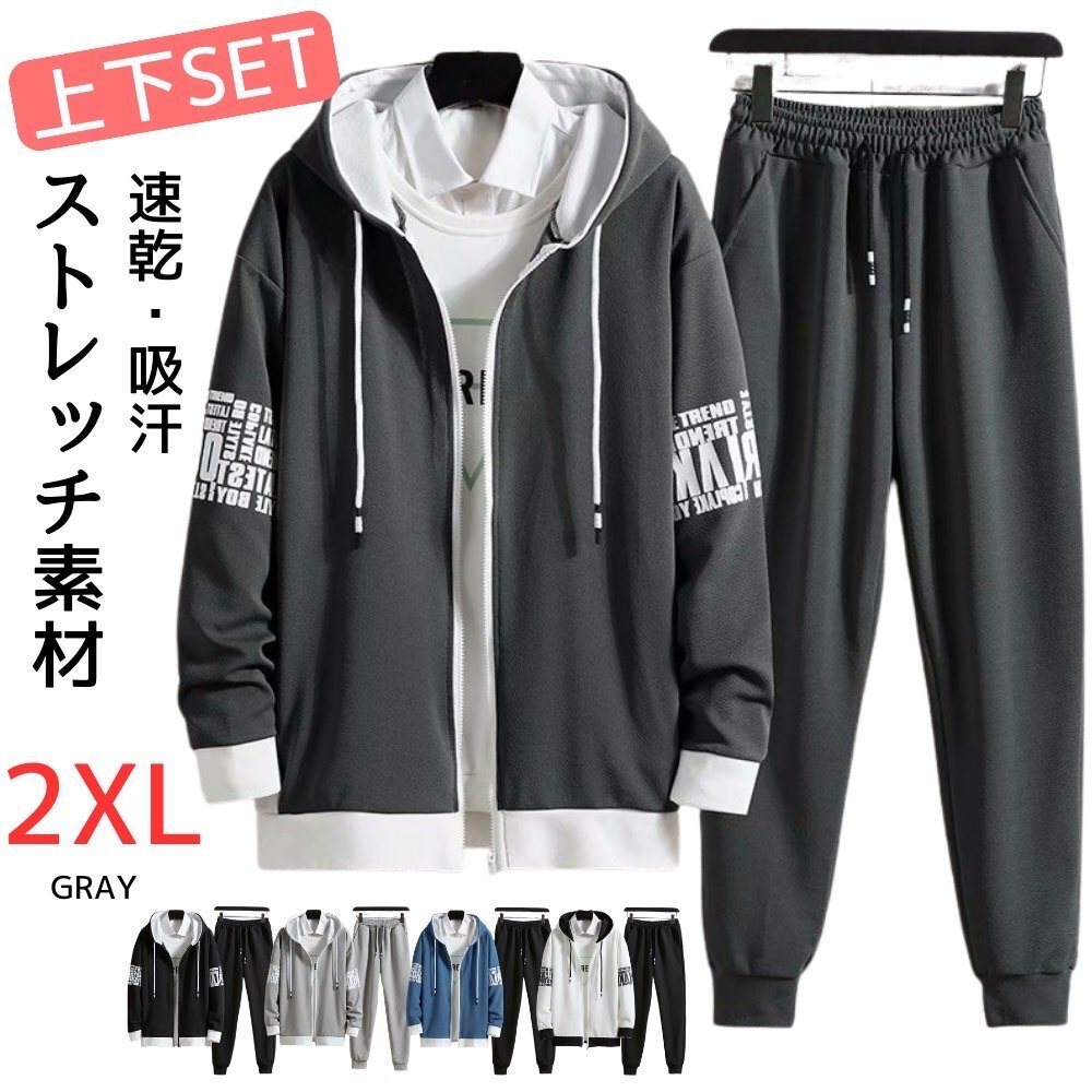 セットアップ メンズ ジャージ上下 スウェット上下 ルームウェア スポーツウェア 長袖 長ズボン 速乾 通気性 カジュアル グレー 2XL