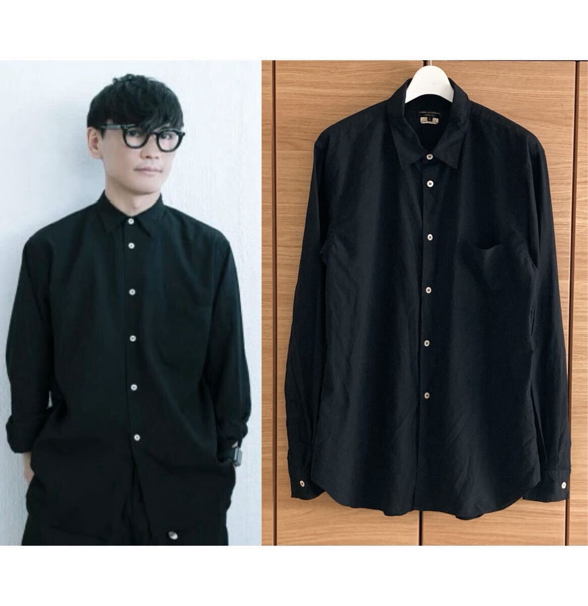 サカナクションの山口一郎氏がプライベートで着用しているコムデギャルソン オム プリュスのポリエステル縮絨シャツです