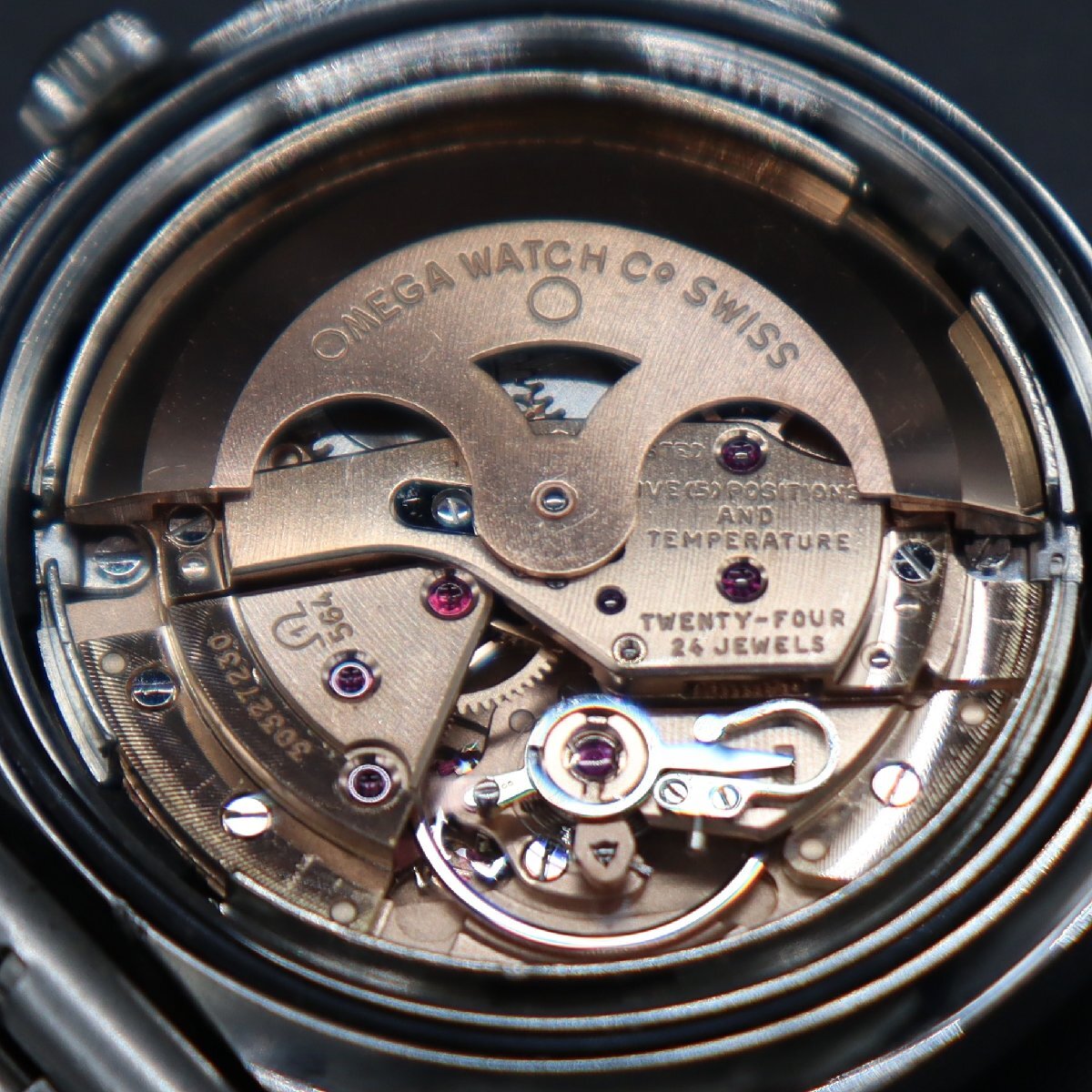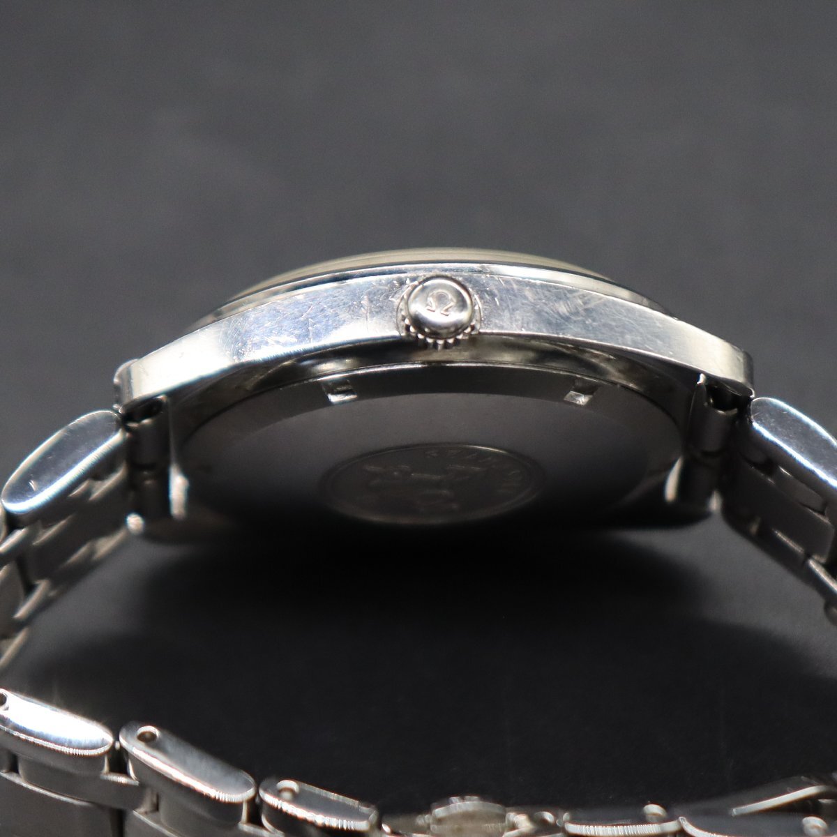 令和7年11月、当店専属の時計修理店(一級時計修理技能士)にてOH済ですので 次回メンテナンス時期まで安心してお使い頂けるお品物です。 OH後、平置きで24時間動作確認済み、±30秒以内で遅れなく稼働中です。 リューズ一段引きで時刻調整、 さらにもう一段引くと日付が一つ進み日付早送りです。 ※アンティーク時計を長くお使いいただくため、 丁寧に、やさしく操作していただくようお願いいたします。 オメガシーマスターの元祖デカ厚ケース、通称「ジャンボ」です。 状態としてはベゼルとケースにキズや小打痕、針の夜光に経年変色、 風防にごくごくうっすらとしたキズはございますが ダイヤル全体に目視で目立つほどの傷みはなく、時計のきれいなお品です。 植字ロゴ、印字ロゴ、インデックス、いずれも良好です。 裏蓋、スレはございますがシーホースマーク良好です。 リューズ、Ωロゴ付き純正品です。 風防中央、透かしΩマークございます。 ブレス、スレ・小タレ程度で概ね良好です。 古いお品物ですので、状態は画像にてご判断ください。 |