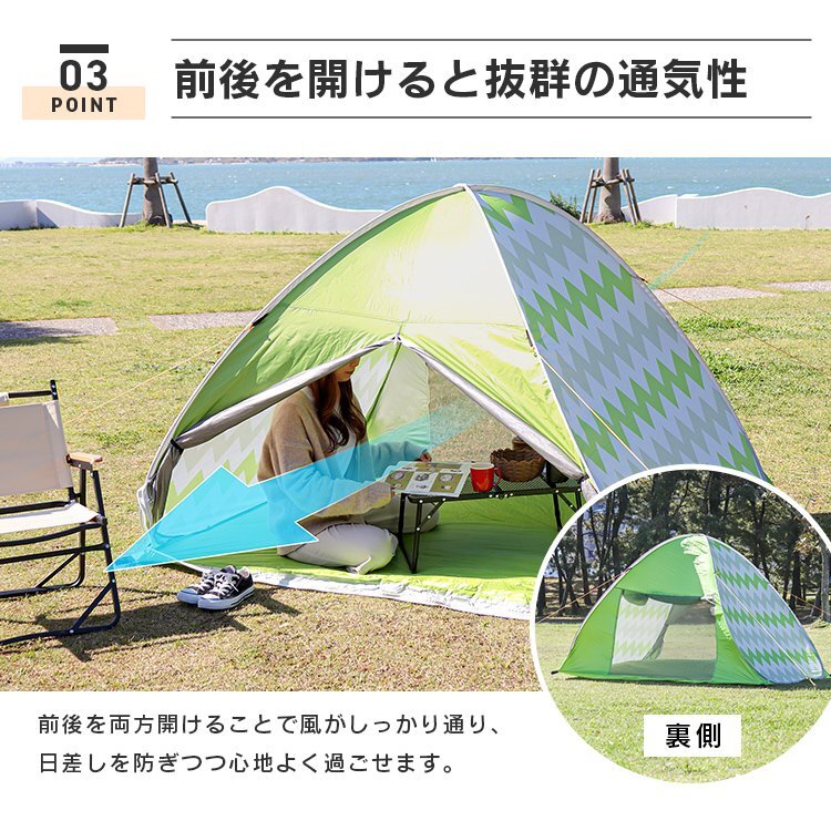 | 取り出してすぐ設置!パッと開くだけで使える! 日よけ・荷物置きにも最適なフルクローズサンシェードテントです。 海水浴やピクニック、アウトドアに最適! 大人が余裕で寝ころぶことが出来るサイズで、暑い日ざしの日よけや荷物置きとしてもGood! 強い日差しの下でも紫外線から守る遮断コート生地採用! 組み立て不要!ワンタッチで使えて持ち運びもとても便利です。 メッシュスクリーンが前後にあるので、蚊や虫の侵入を防ぎながら換気が出来ます。 簡易ロック付で防犯面でも安心! 【商品仕様】 使用時(約):幅200×奥行150×高さ130cm 収納時(約):幅57×奥行57×厚さ4.5cm 重さ(約):2kg カラー:サンドイエロー 【商品内容】 テント本体、ペグ8本、ロープ4本、キャリーバッグ 【注意事項】 ・熱したもの(鍋/やかん等)を近づけないでください ・テント内で火気、木炭やガスを使用しないでください ・シェブロンカラーには収納ポケットが付いておりません (ビーチテント ワンタッチ メッシュ デイキャンプ バーベキュー 運動会 海 公園 震災 災害 避難所 2人 3人 4人) |