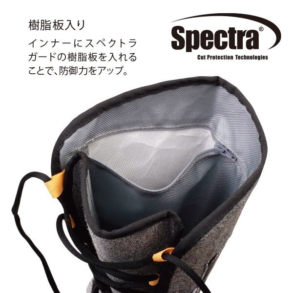 ■アキレス腱部にスペクトラ樹脂板を追加し(脱着可能)更なる安全性を追求。
