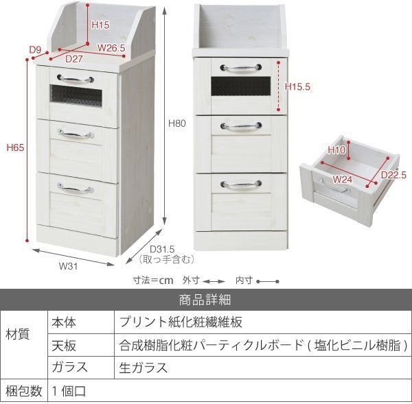 (ローチェスト 幅30cm カントリーテイスト 引き出し付き 高さ80cm