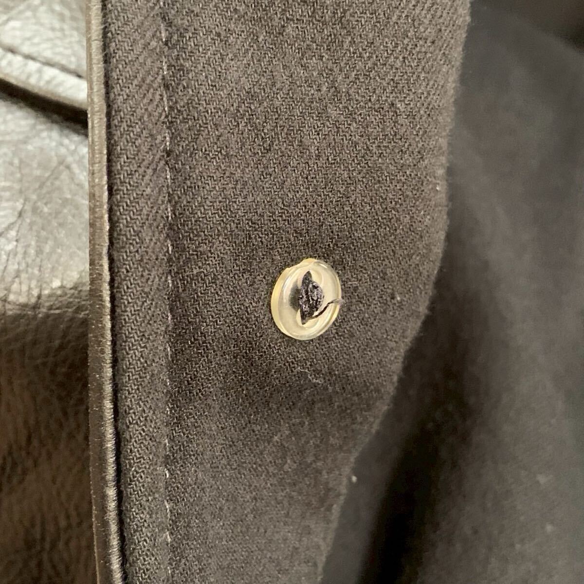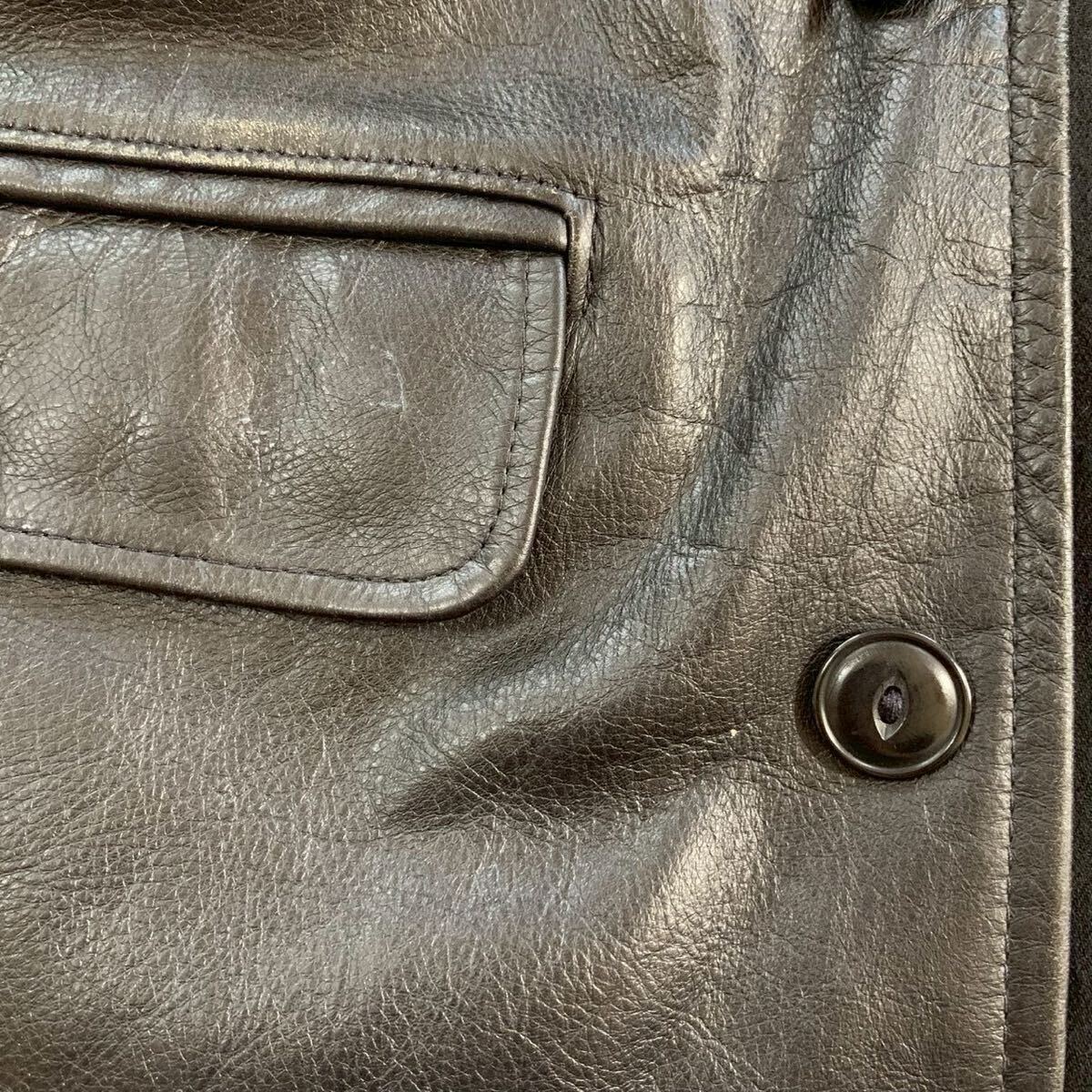 前面右ポケット、左右袖、裾上にシミがございます。気になる場合はクリーニングなどしていただいてからの使用をお勧めします。