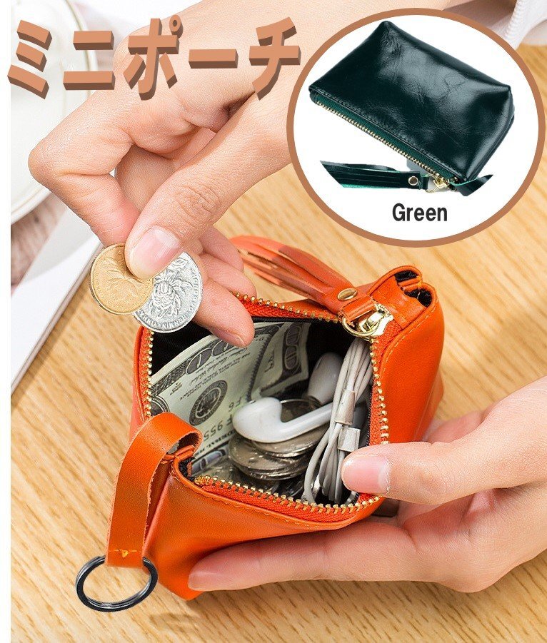 ミニポーチ グリーン ミニ財布 カードケース キーケース 小さい財布 小銭入れ コインケース 財布 コンパクト財布 牛革 n518
