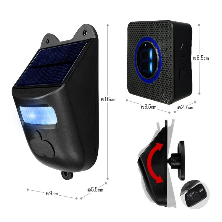 センサー感知距離:3段階設定(5-8m/8-12m/13-16m)