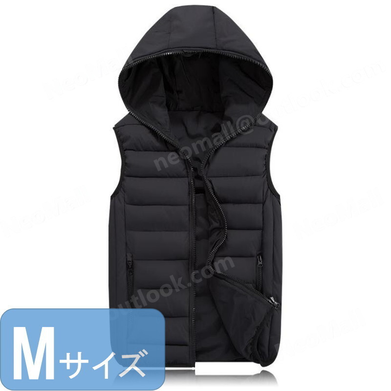 シンプルな メンズ ダウンベスト 003 ブラック Mサイズ 中綿ダウン 中綿ベスト キルティング アウター 防寒 秋冬 暖かい