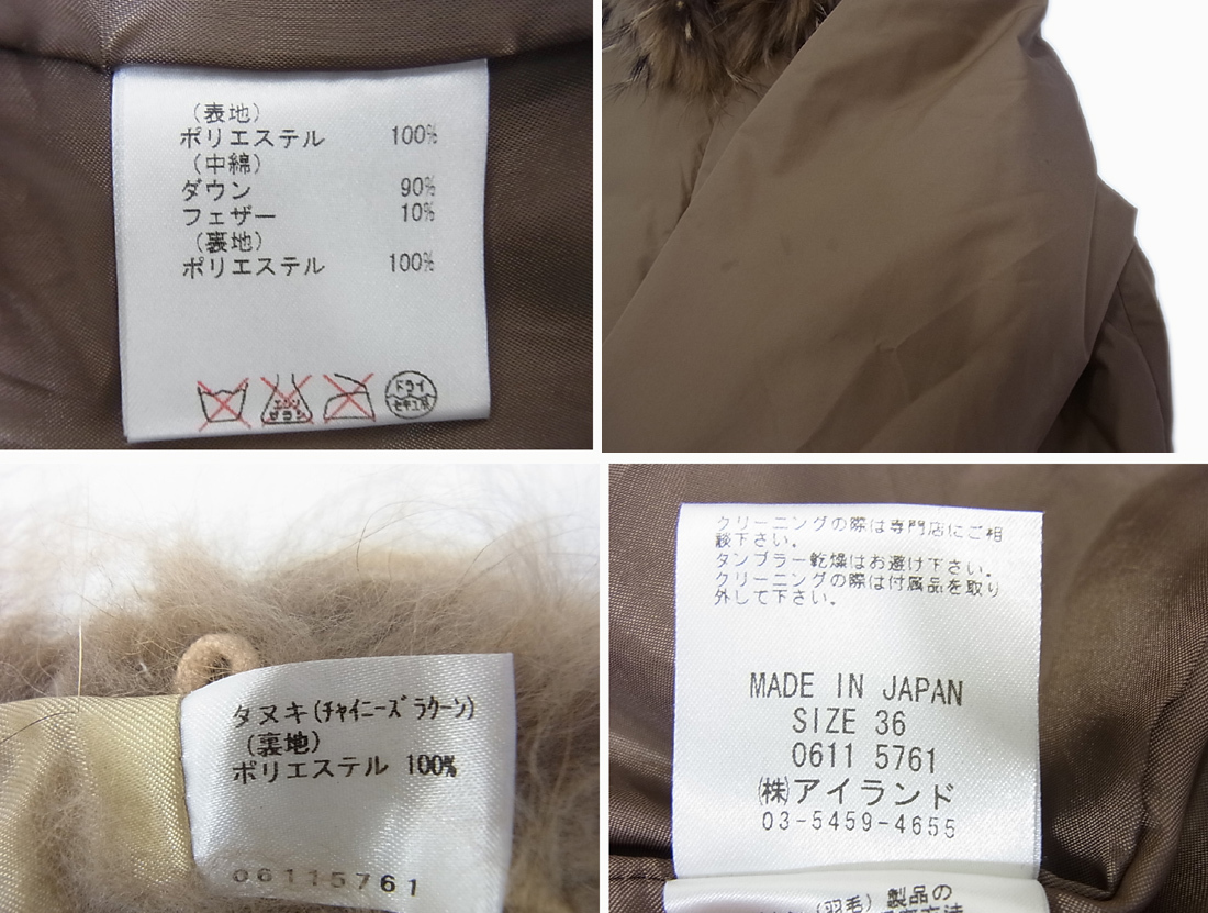 ふんわり軽く暖かなダウン90%入りで、エレガントなシルエットもしっかりキープ。日本製ならではの丁寧な仕立てで、冬の主役アウターとして活躍します。ウェブ参考定価は約7万円【(株)アイランド】の正規品です。