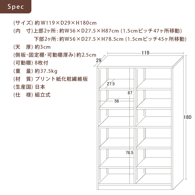 ★耐荷重は固定棚が37kg・可動棚は30kg