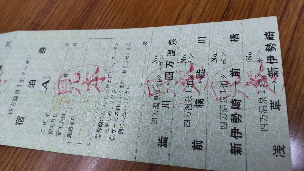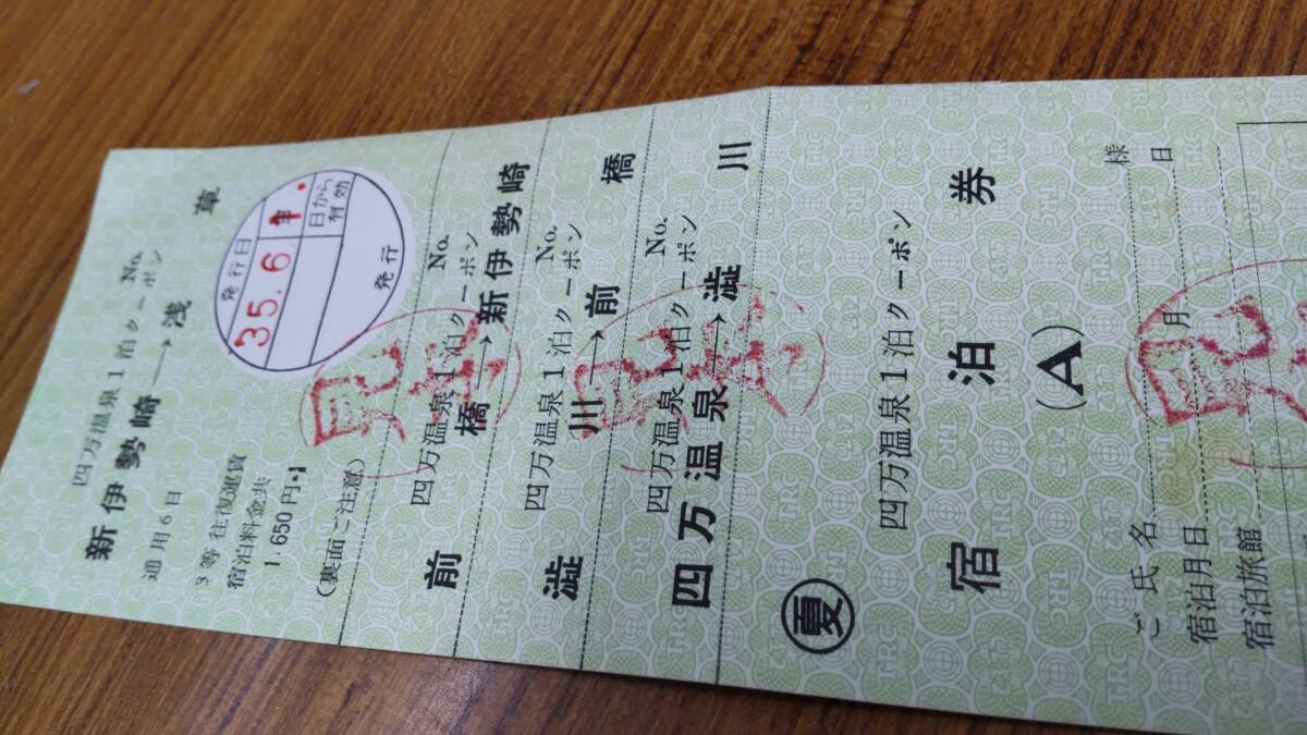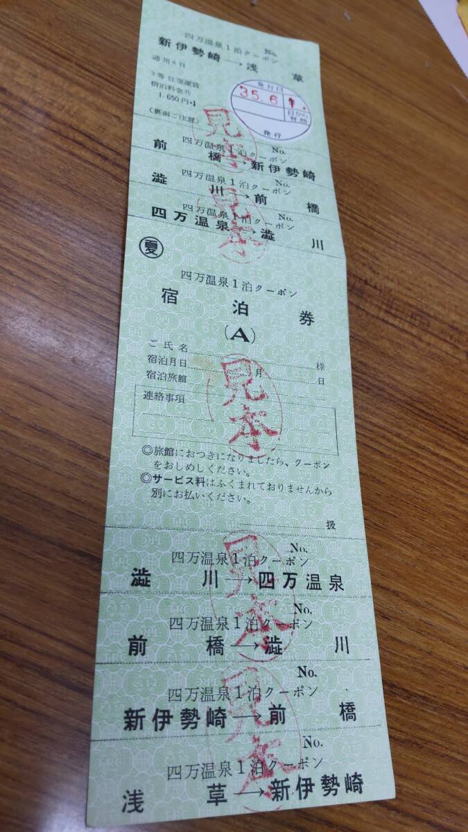 NOD49  東武鉄道 昭35 クーポン乗車券 3等 【 四万温泉1泊クーポン 新伊勢崎 ー 浅草 】見本印