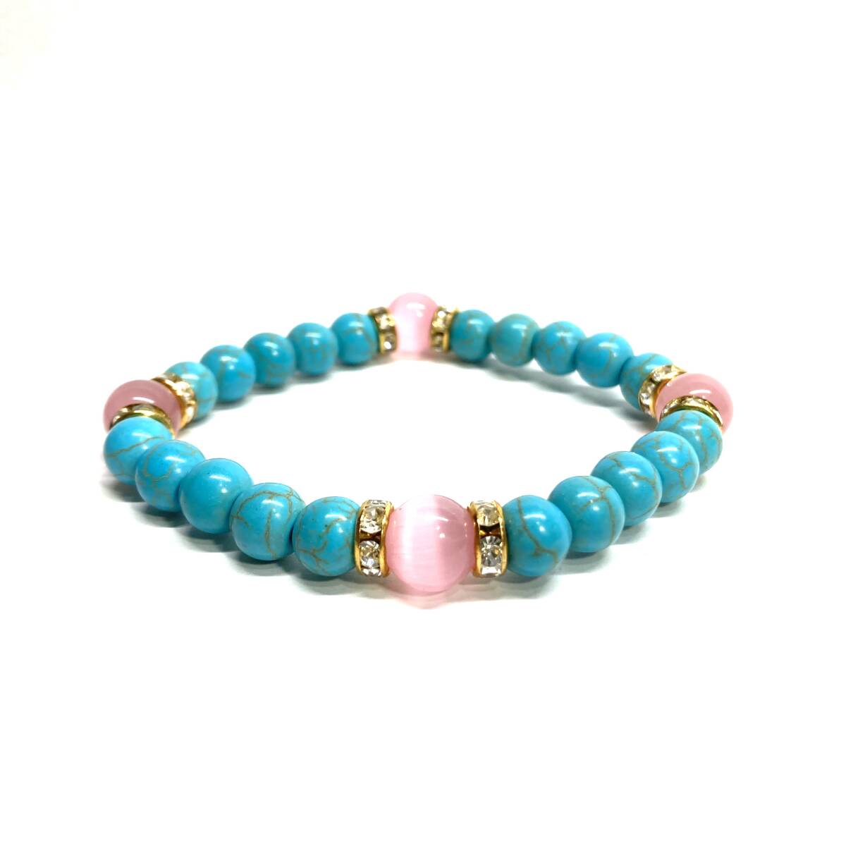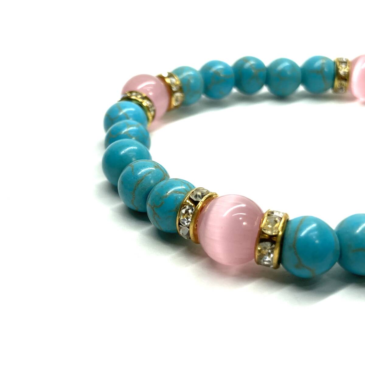 ターコイズ&キャッツアイ(ピンク)パワーストーン ブレスレット(ゴールド)メンズ レディース 男性 女性 開運 数珠 お守り