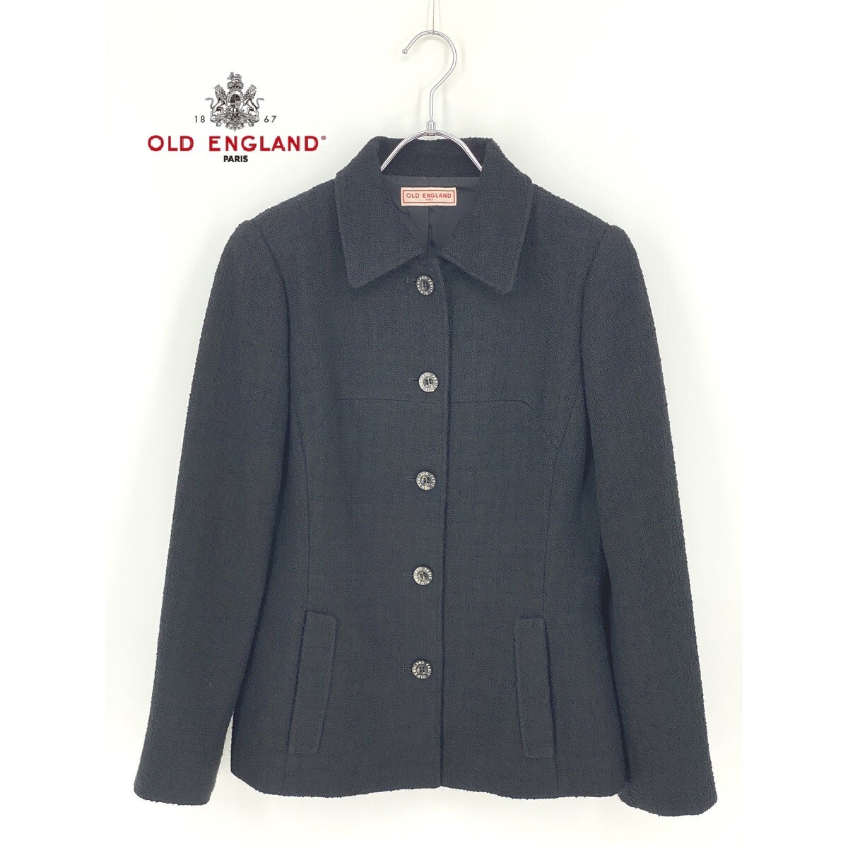 B0789/美品 OLD ENGLAND オールドイングランド ウール ツイード テーラード ブレザー ジャケット 36 S程 黒 レディース スーツ用 冠婚葬祭