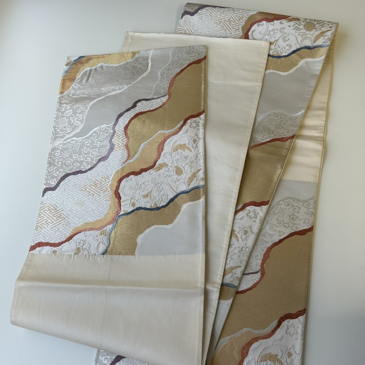 【楓】袋帯 正絹 上品な花唐草流し 六通 KK-2251