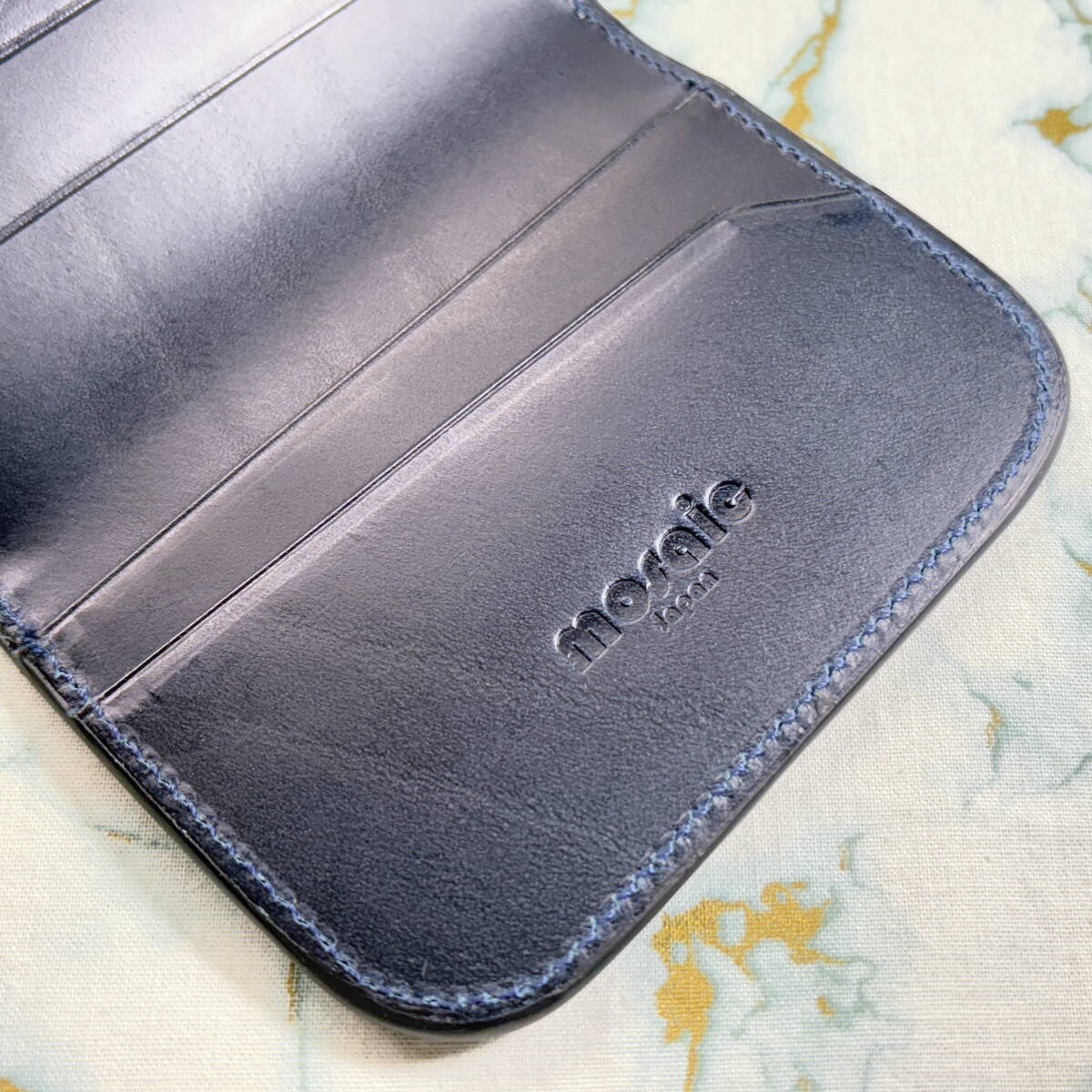 「ワルピエ社」が手掛けるブッテーロレザー(ネイビー)を採用。
