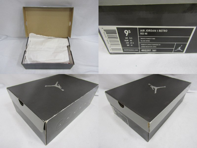 1円スタート NIKE AIR JORDAN 1 RETRO KO HIGH White Varsity Red 402297-161 エアジョーダン1 27.5cm BOX付き 1スタ 未使用品◆9583 | |||||||||