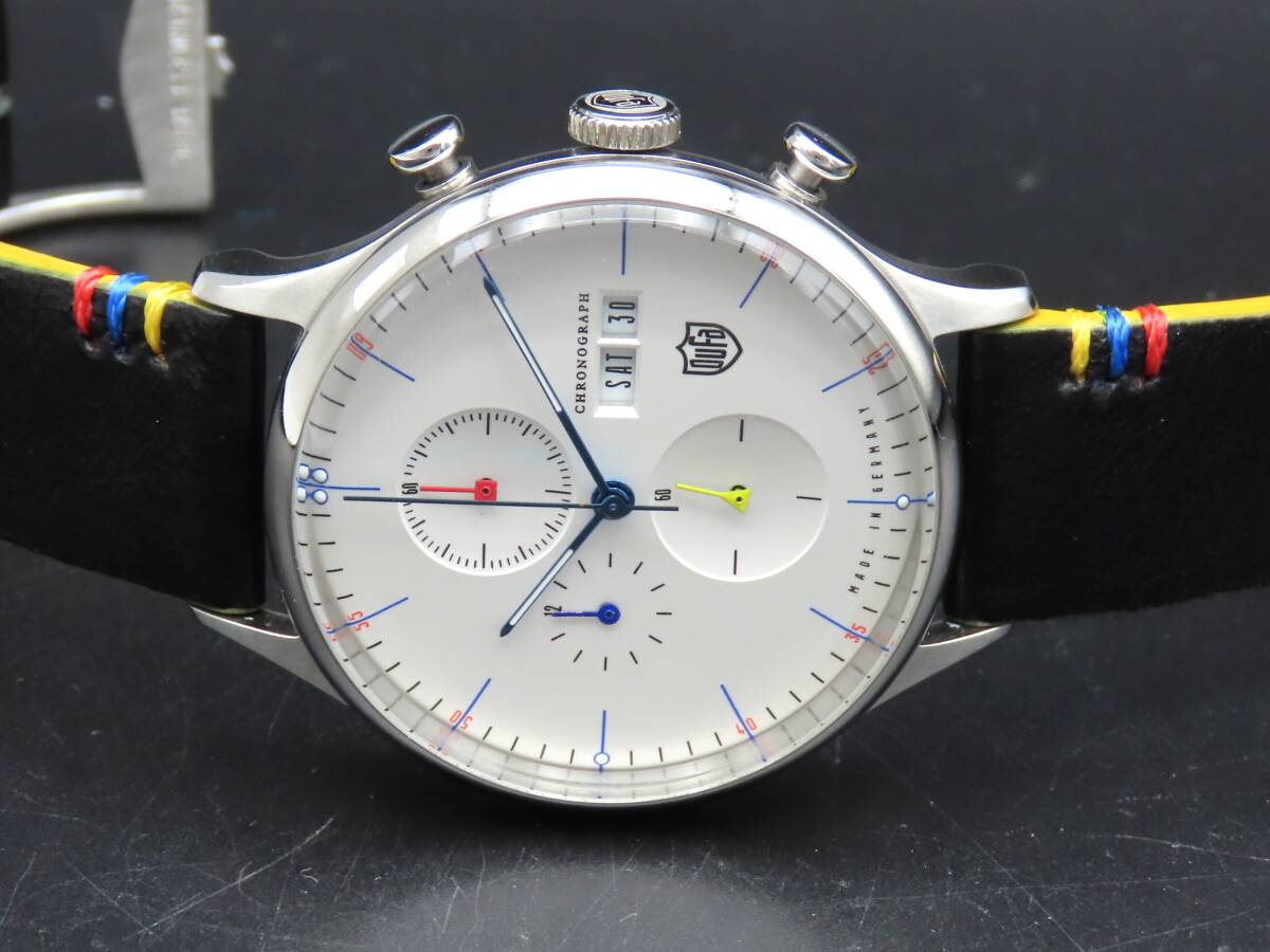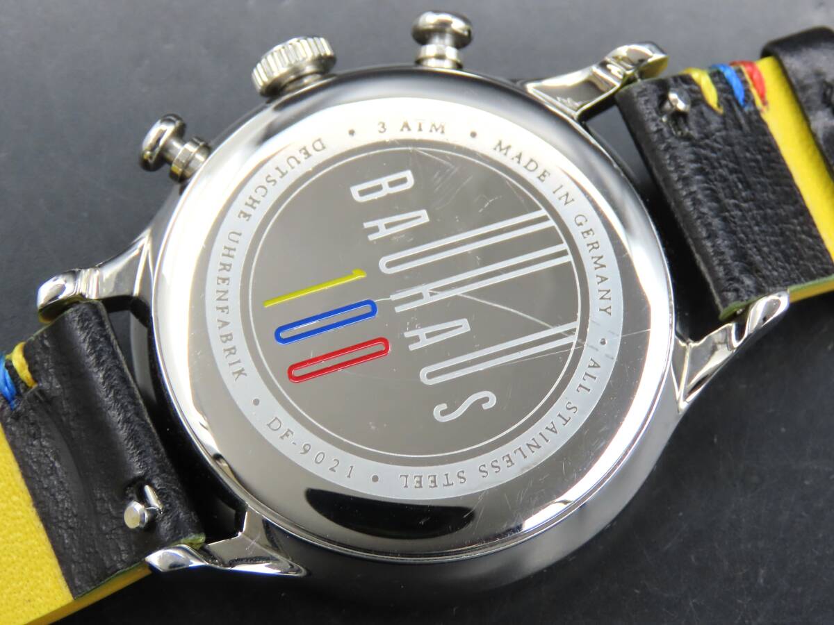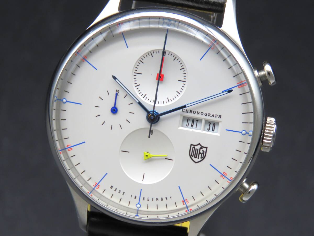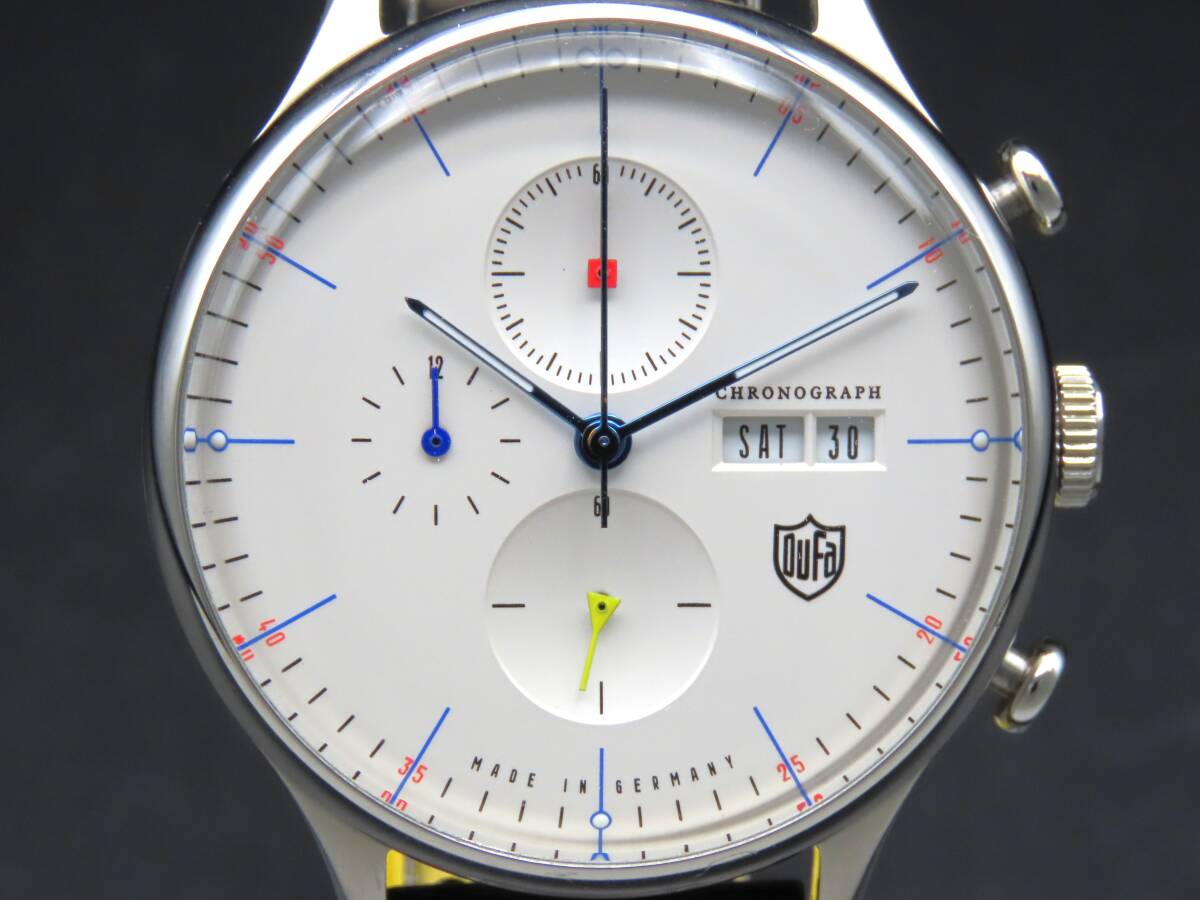 1円 稼動品★正規品 DUFA ドゥッファ DF-9021 バウハウス 100周年 クロノグラフ クォーツ デイデイト 純正ブレス メンズ腕時計 PPKLG2308