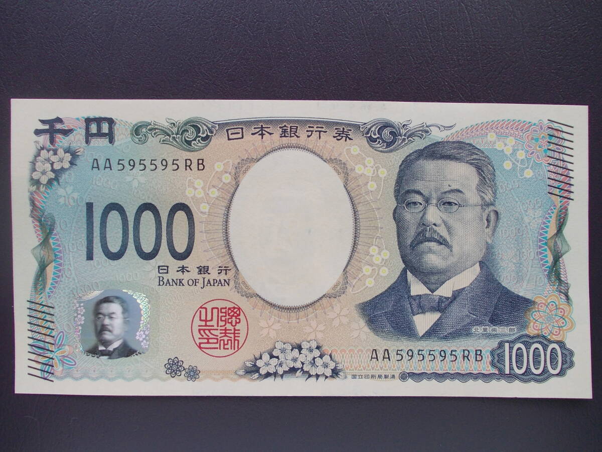 北里柴三郎千円の頭AAの珍番、AA595595RBです。