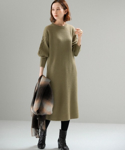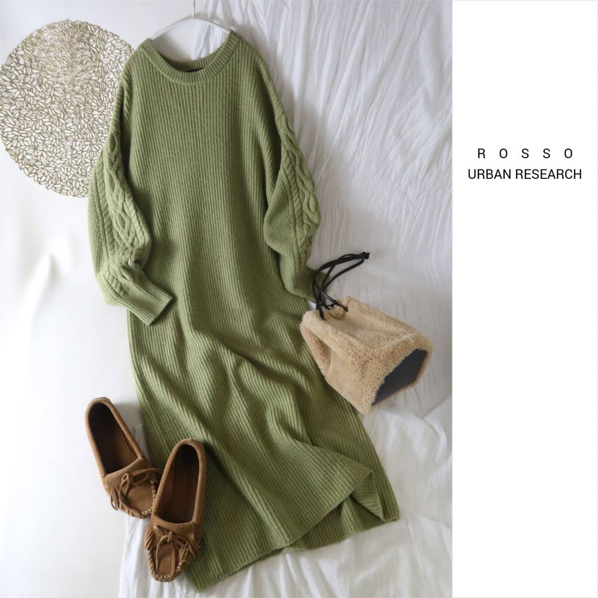 1.6万☆ロッソ ROSSO/アーバンリサーチ☆片畦ケーブルスリーブニットワンピース Fサイズ☆M-B 6134