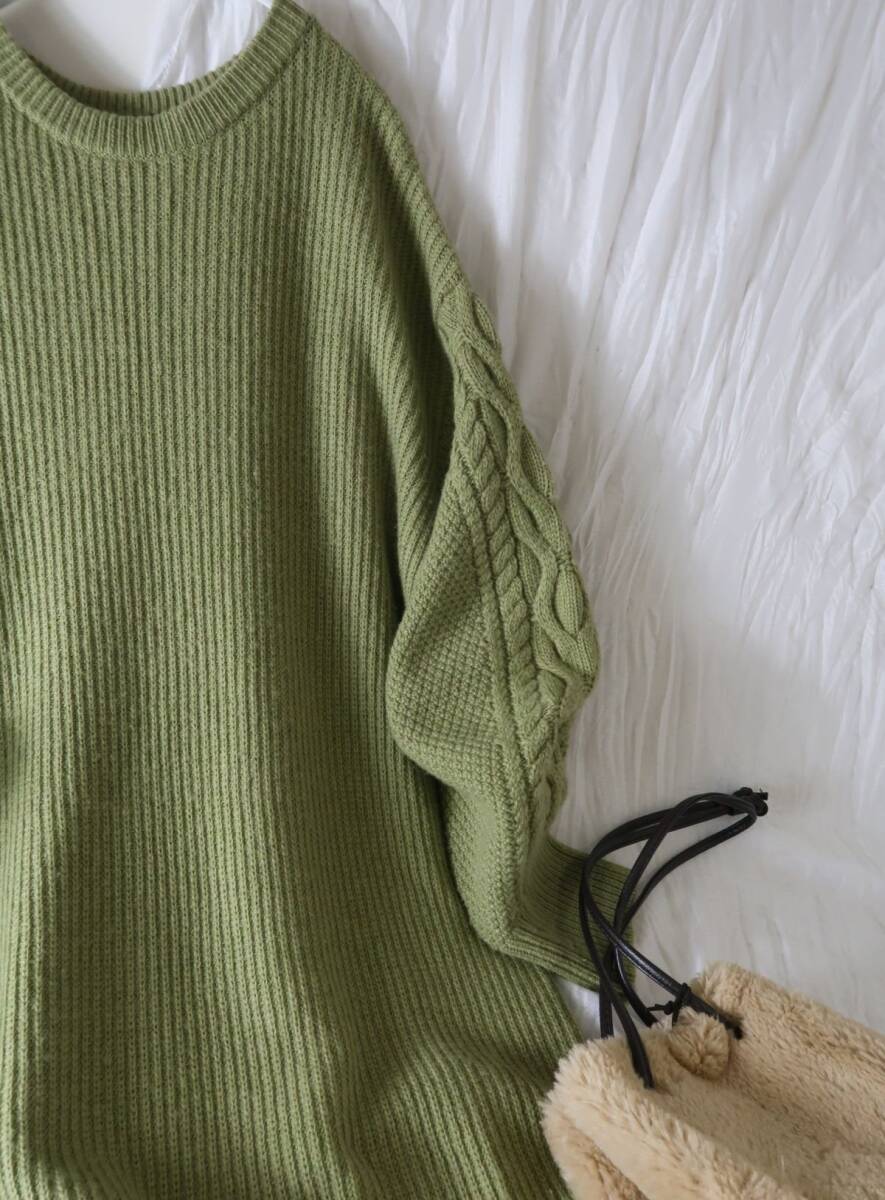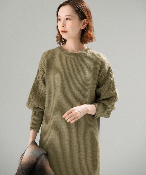 袖の柄編が存在感放つこなれ感たっぷりな一品。程良くゆとりがあるシルエットで、リラクシーに着用して頂けるのも嬉しいポイントです。ボリュームスリーブと、足首が少し見える丈感でバランスの良い仕上がりに。