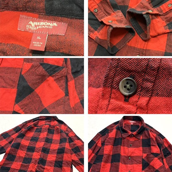 1点物◆アリゾナARIZONA赤黒ネルシャツ長袖ブロックチェックシャツ古着メンズXLレディースOKアメカジ90sストリートUSAブランド中古362276