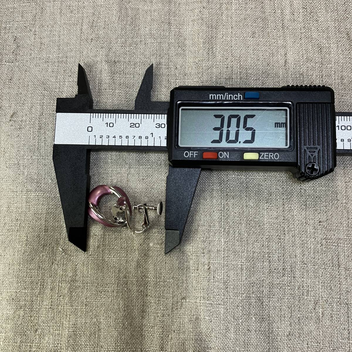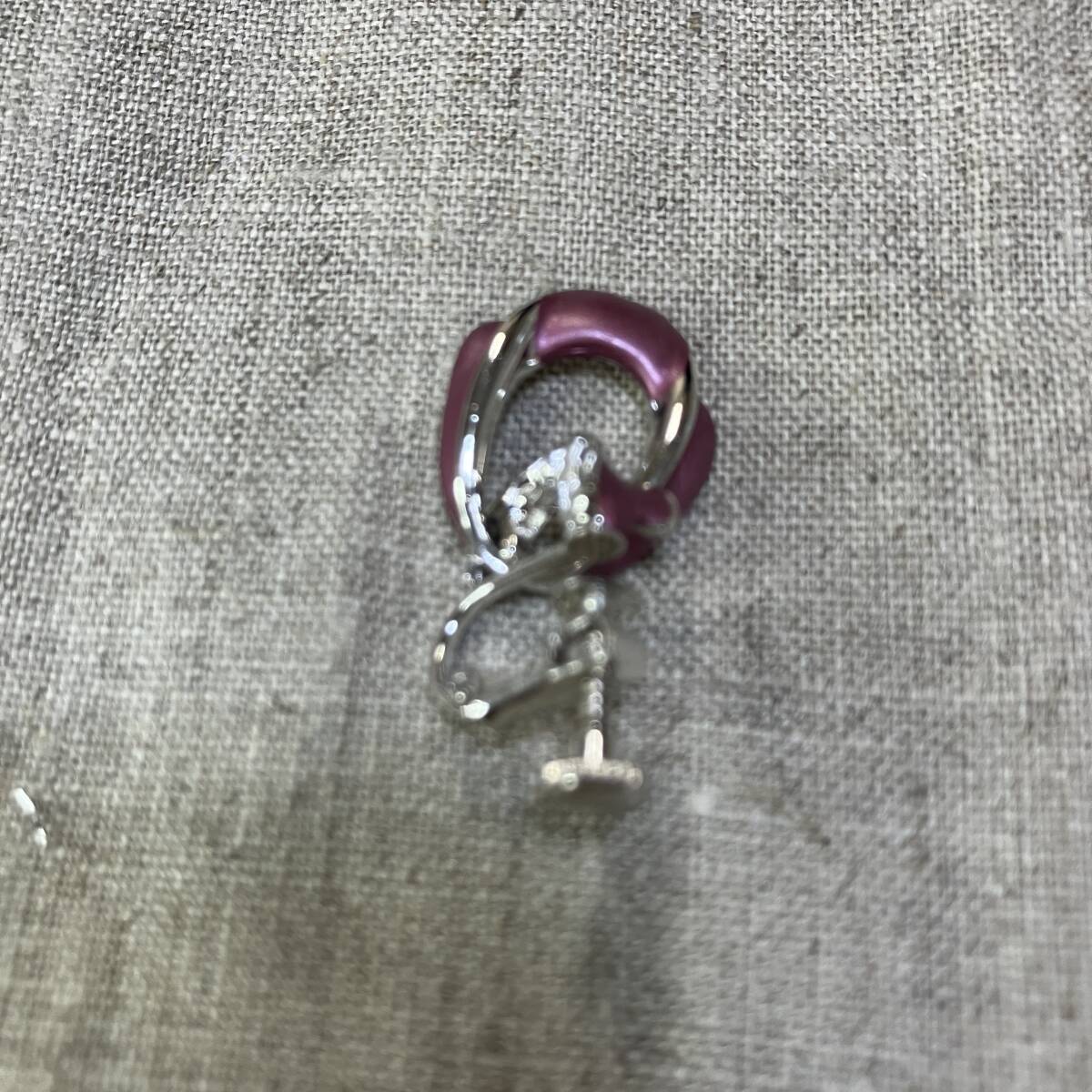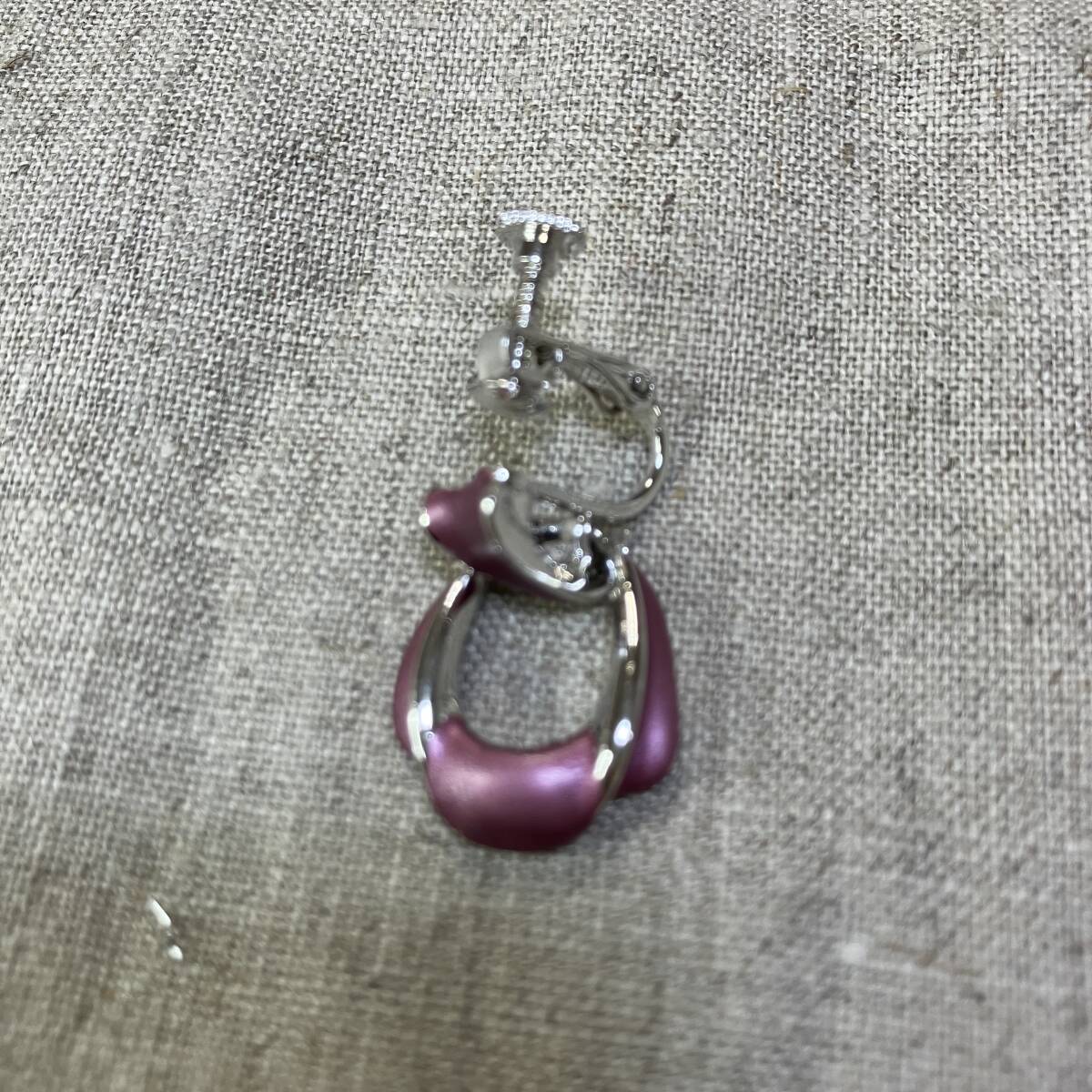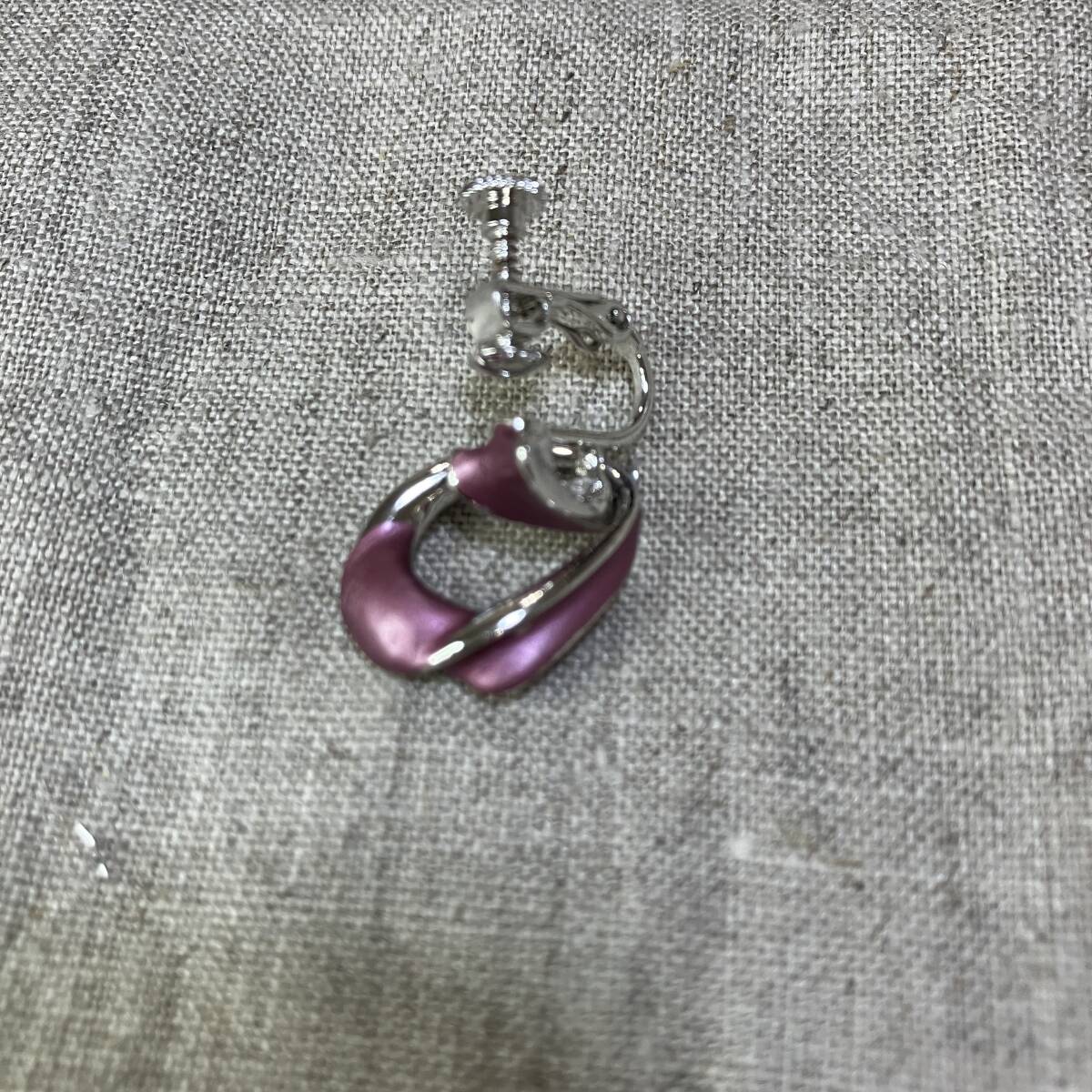 【一点もの】 ピンクエナメル インターロッキング リング イヤリング ネジバネ式 シルバーカラー 中古 良品